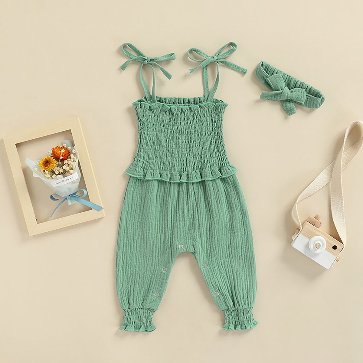 Baby Girl Elegant Solid Colour Sleeveless Jumpsuit with Headband Wholesale