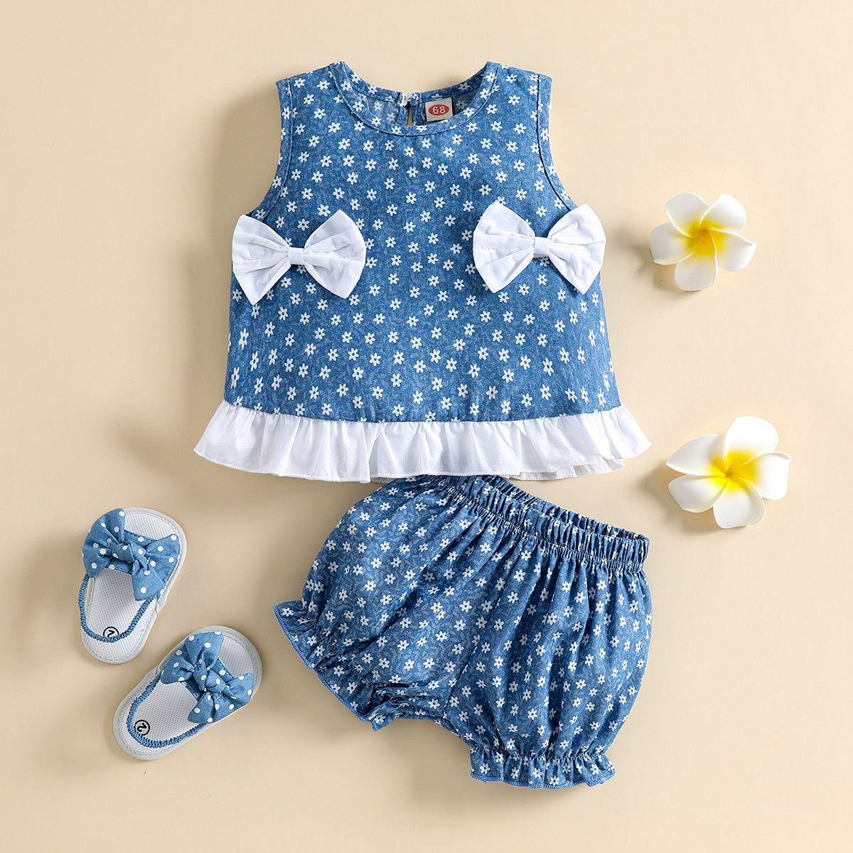 Baby Girl Sweet Bowknot Ruffles Top And Floral Print Shorts Wholesale