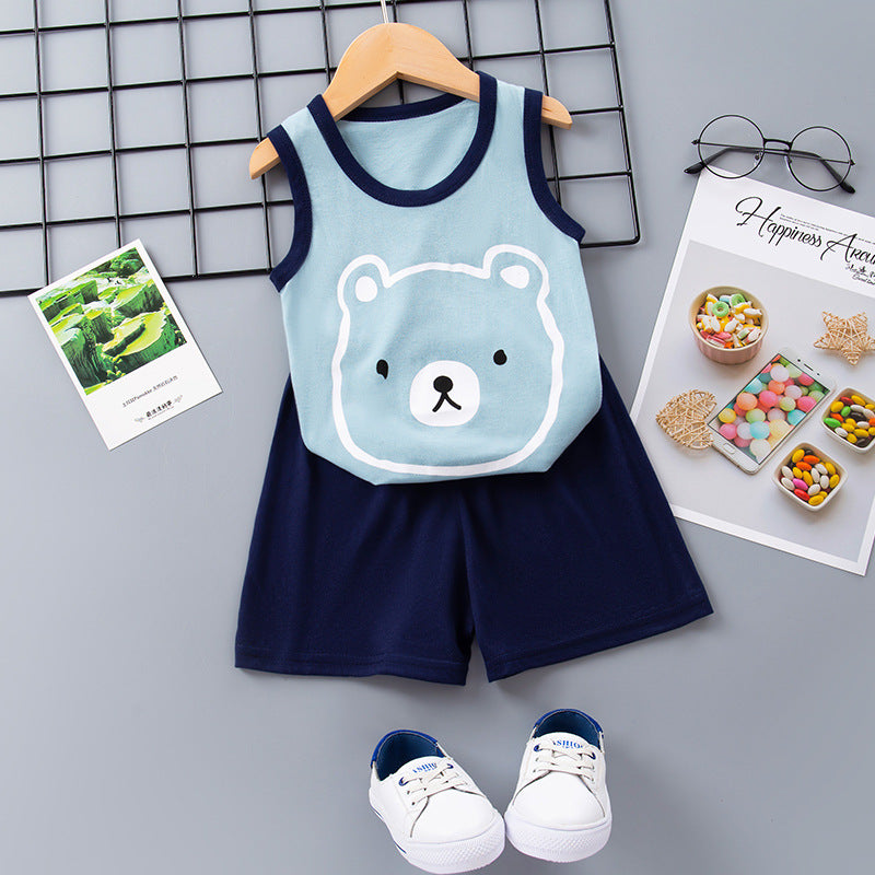 Toddler Boy Cartoon Bear Pattern Vest & Shorts Wholesale