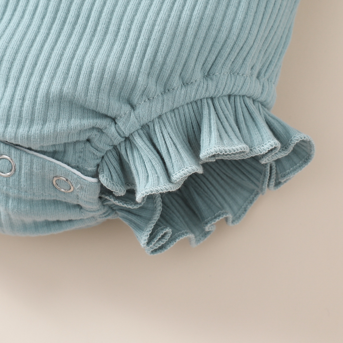 Baby Girl Solid Color Ruffle-sleeve Bodysuit & Shorts & Headband Wholesale