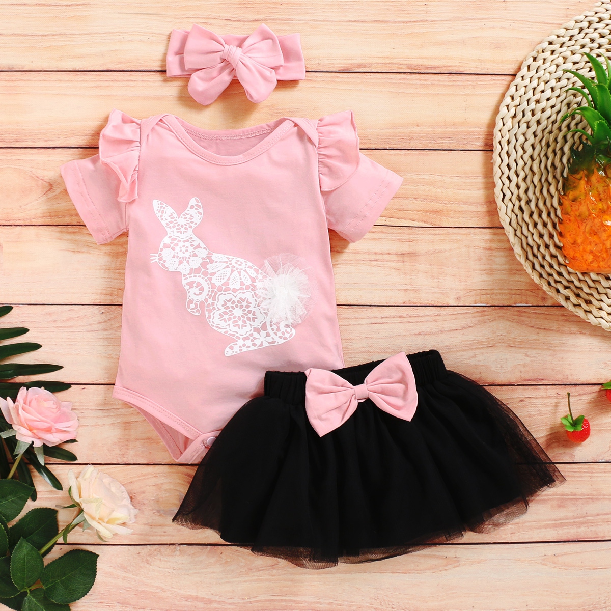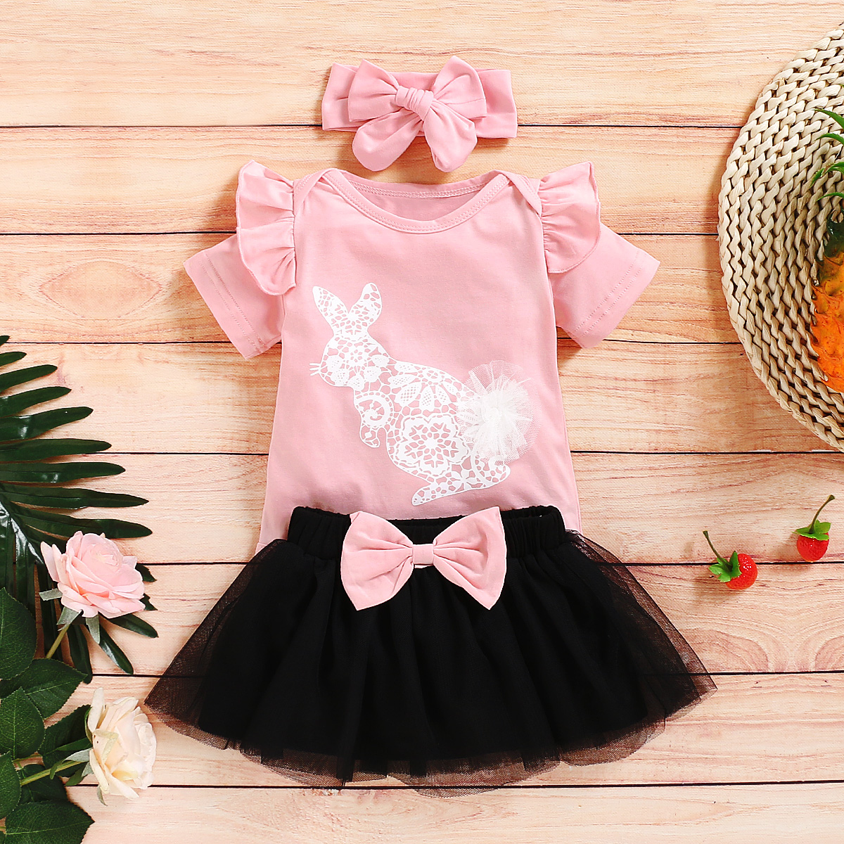 Baby Girl Sweet Rabbit Cartoon Romper & Skirt & Headband Wholesale