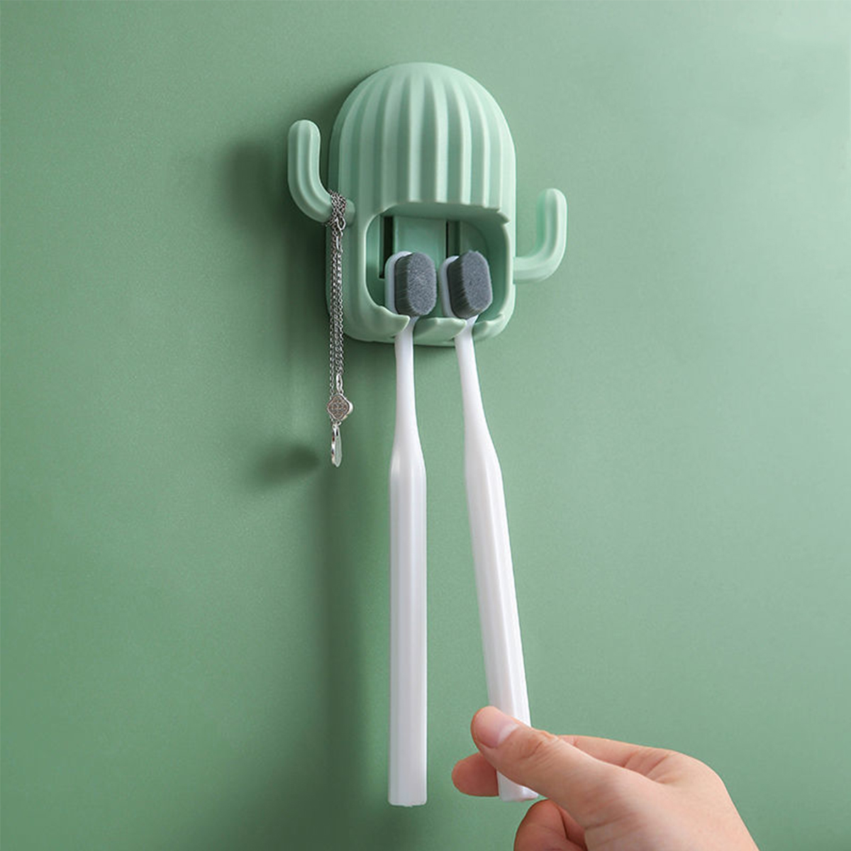 Cactus No-Punch Toothbrush Storage Rack Wall Mount Organizer Wholesale