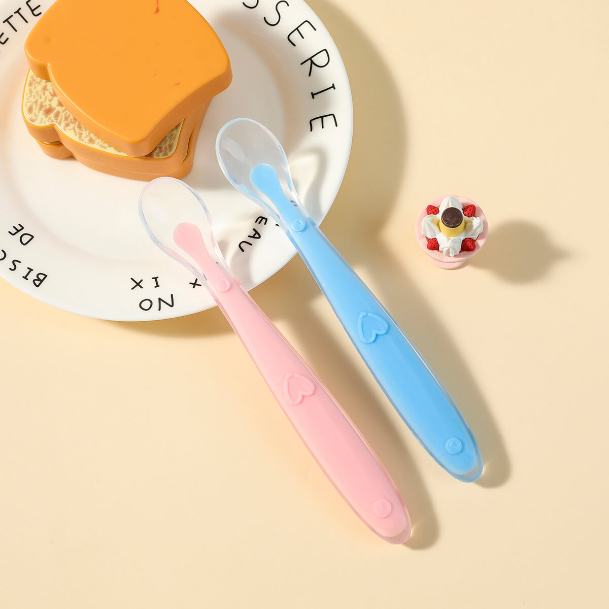 Children feeding sense warm rice spoon soup spoon baby training complementary food silicone tableware Wholesale