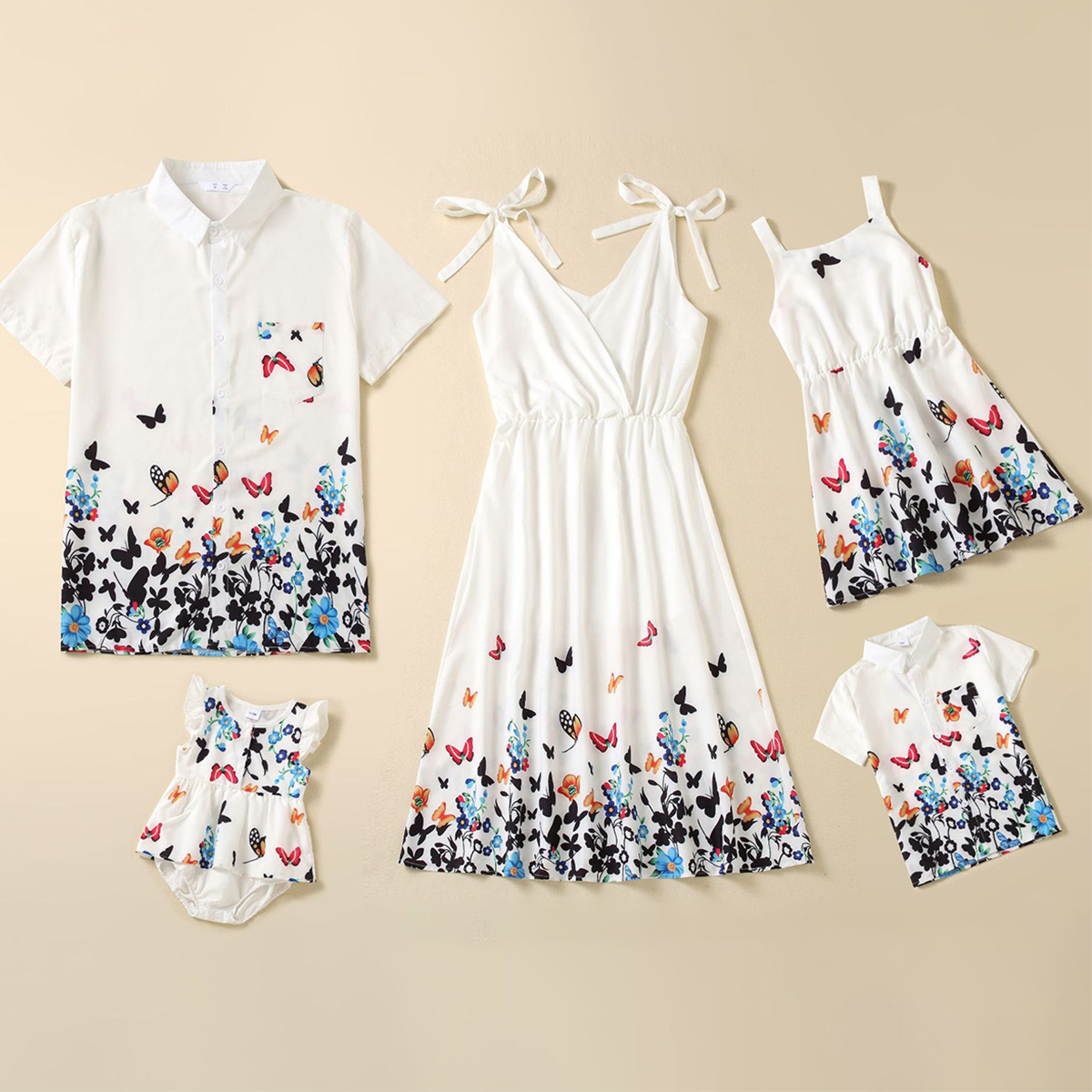 Family Matching Butterfly Print Sleeveless Dress and T-shirt Wholesale