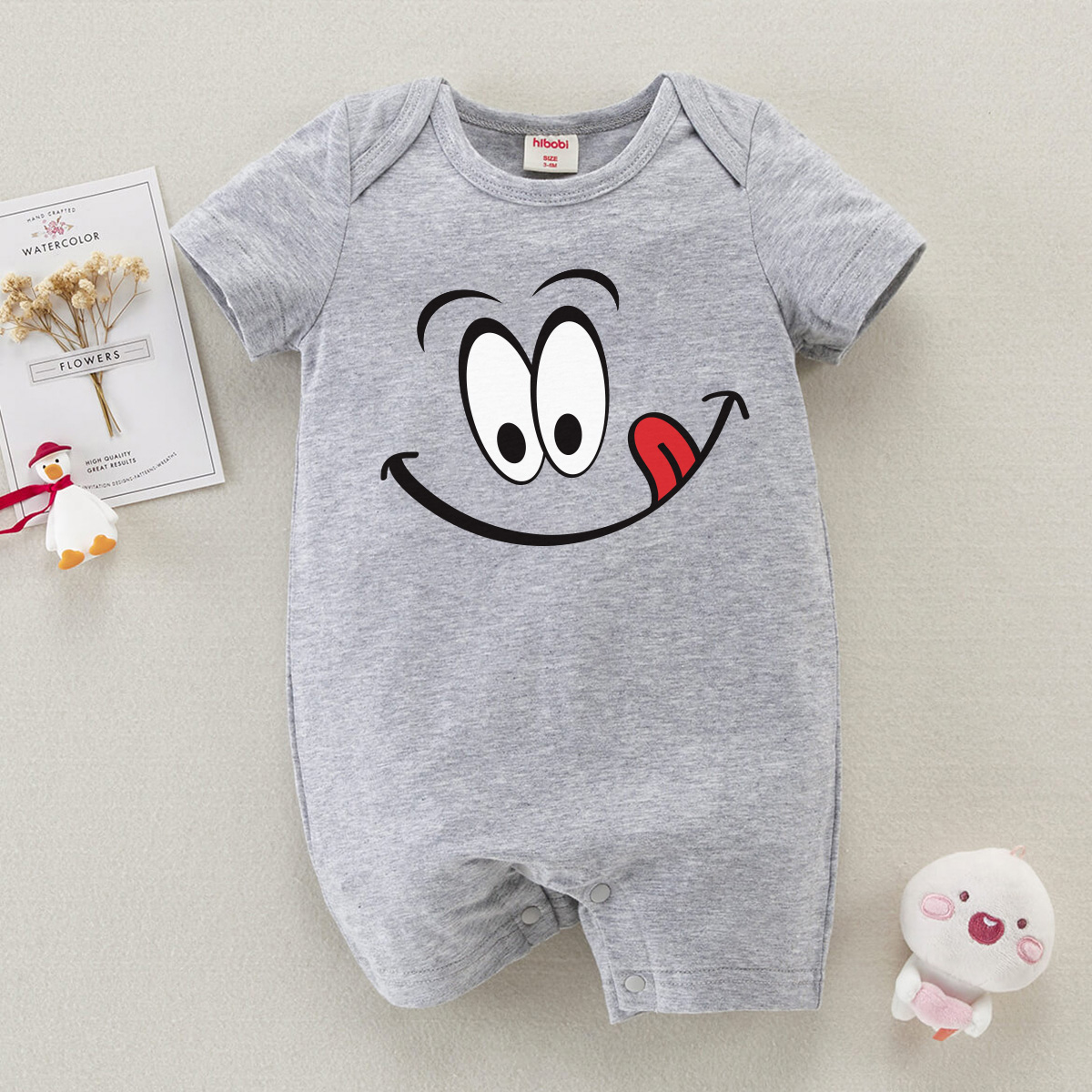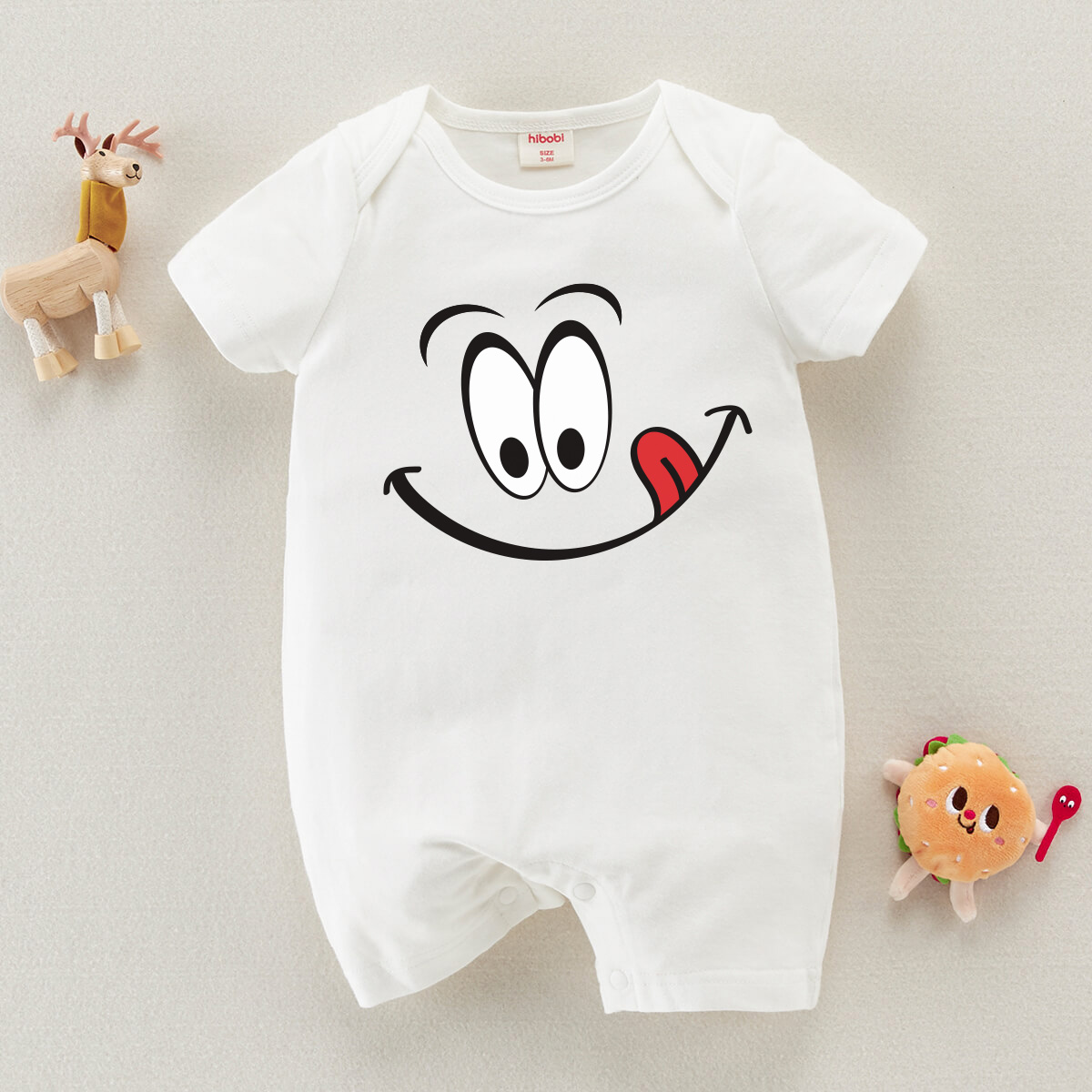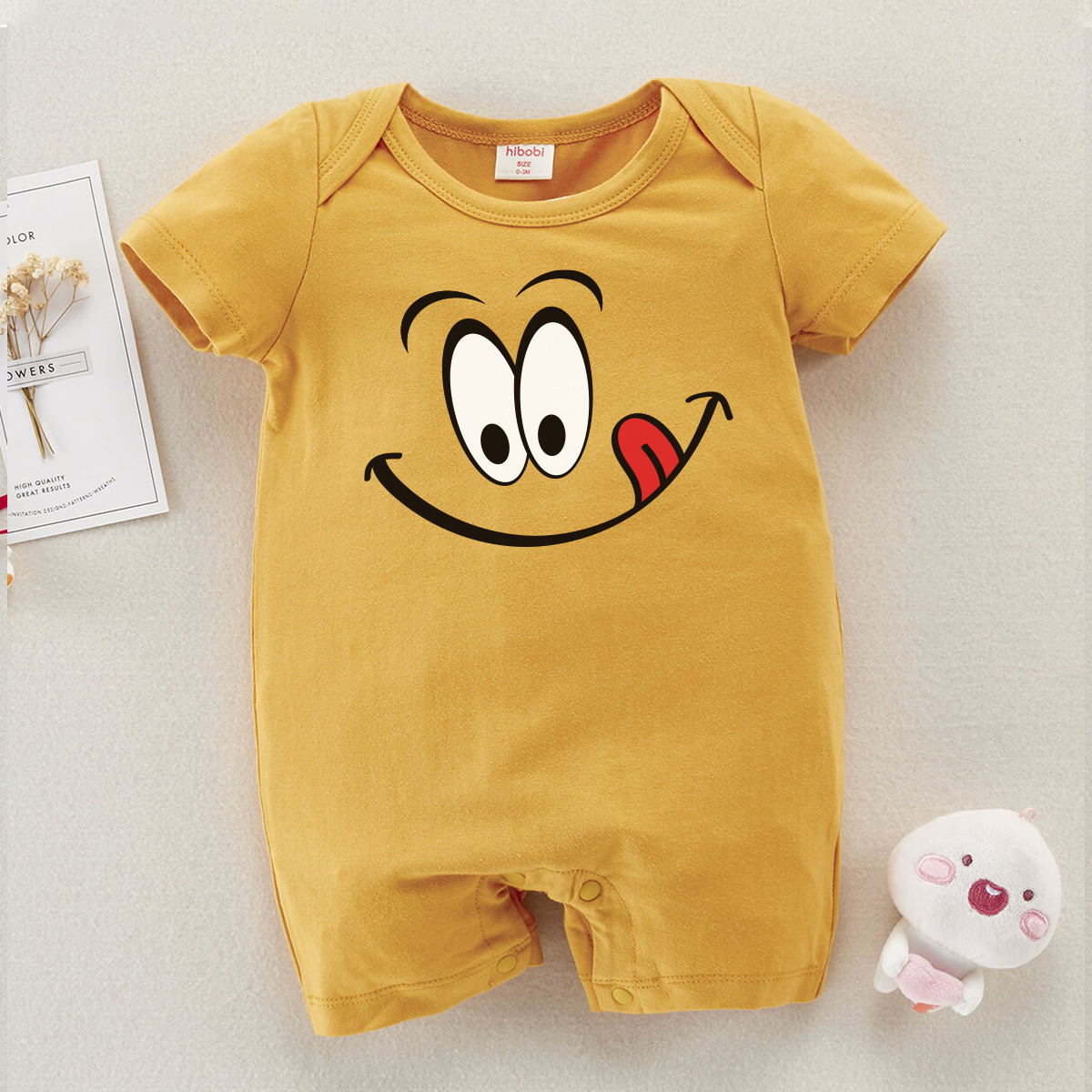 hibobi Baby Cartoon Emoji Print Short Sleeve Bodysuit Wholesale