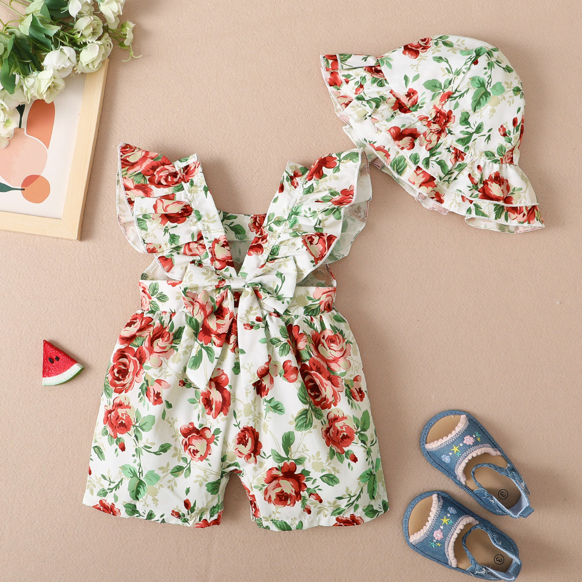 hibobi Baby Girl Cute Print Ruffle Bodysuit Wholesale