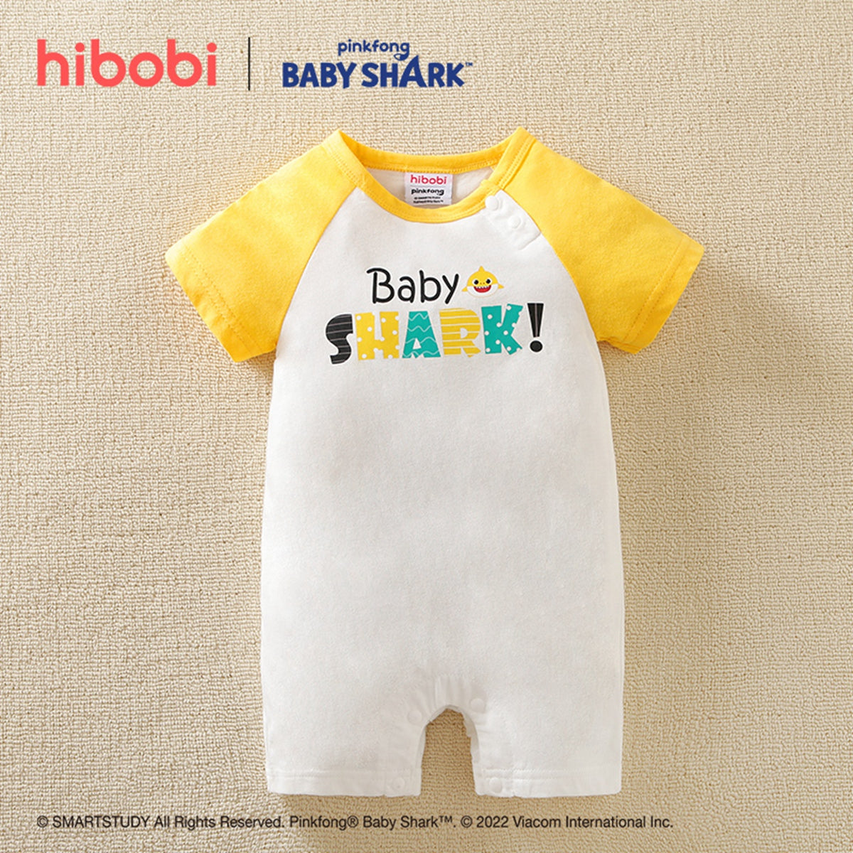 hibobi×Babyshark Baby Cartoon Print Short Sleeve Cotton Jumpsuit Wholesale