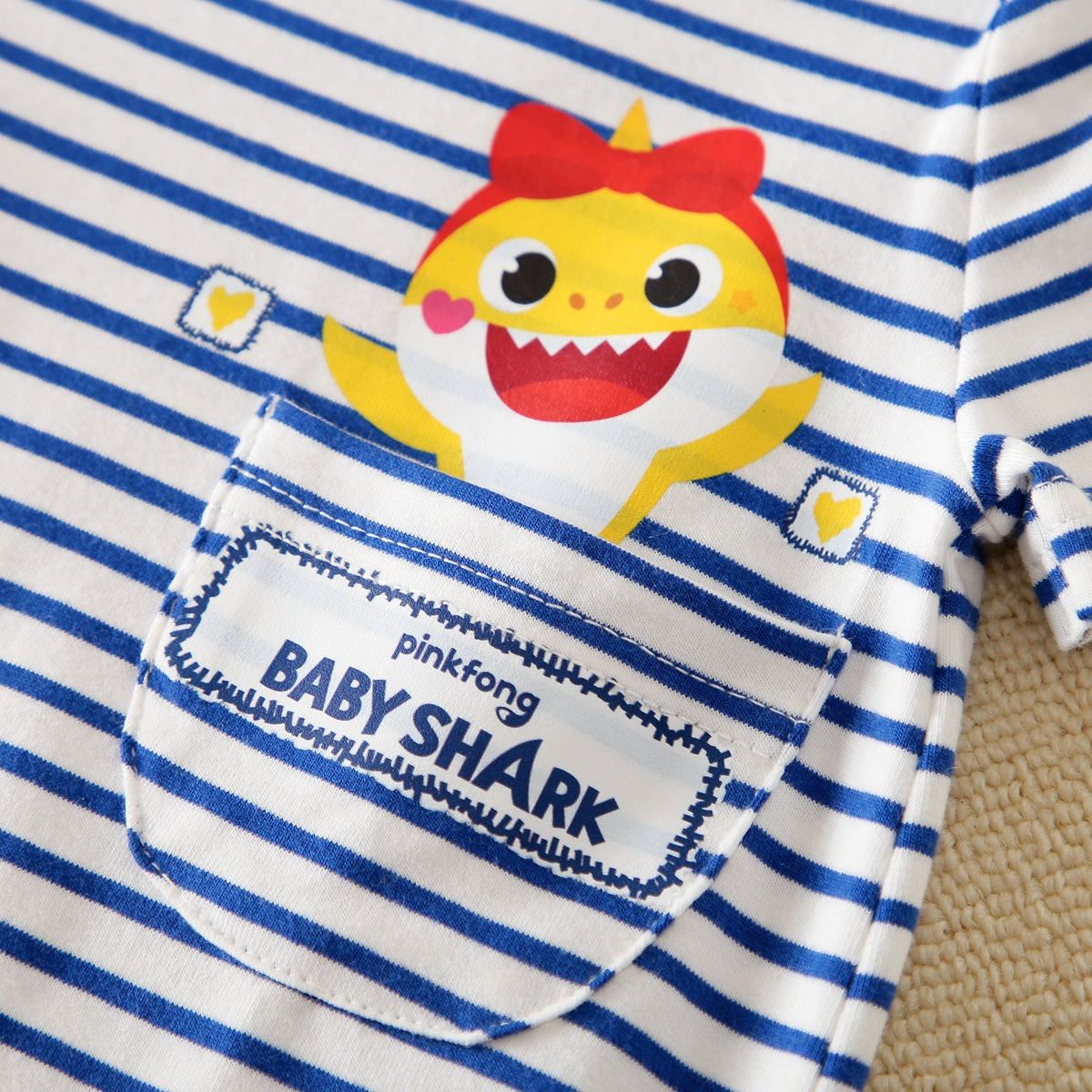 hibobi×Babyshark Baby Cartoon Print & Stripes Short Sleeve Cotton Jumpsuit Wholesale
