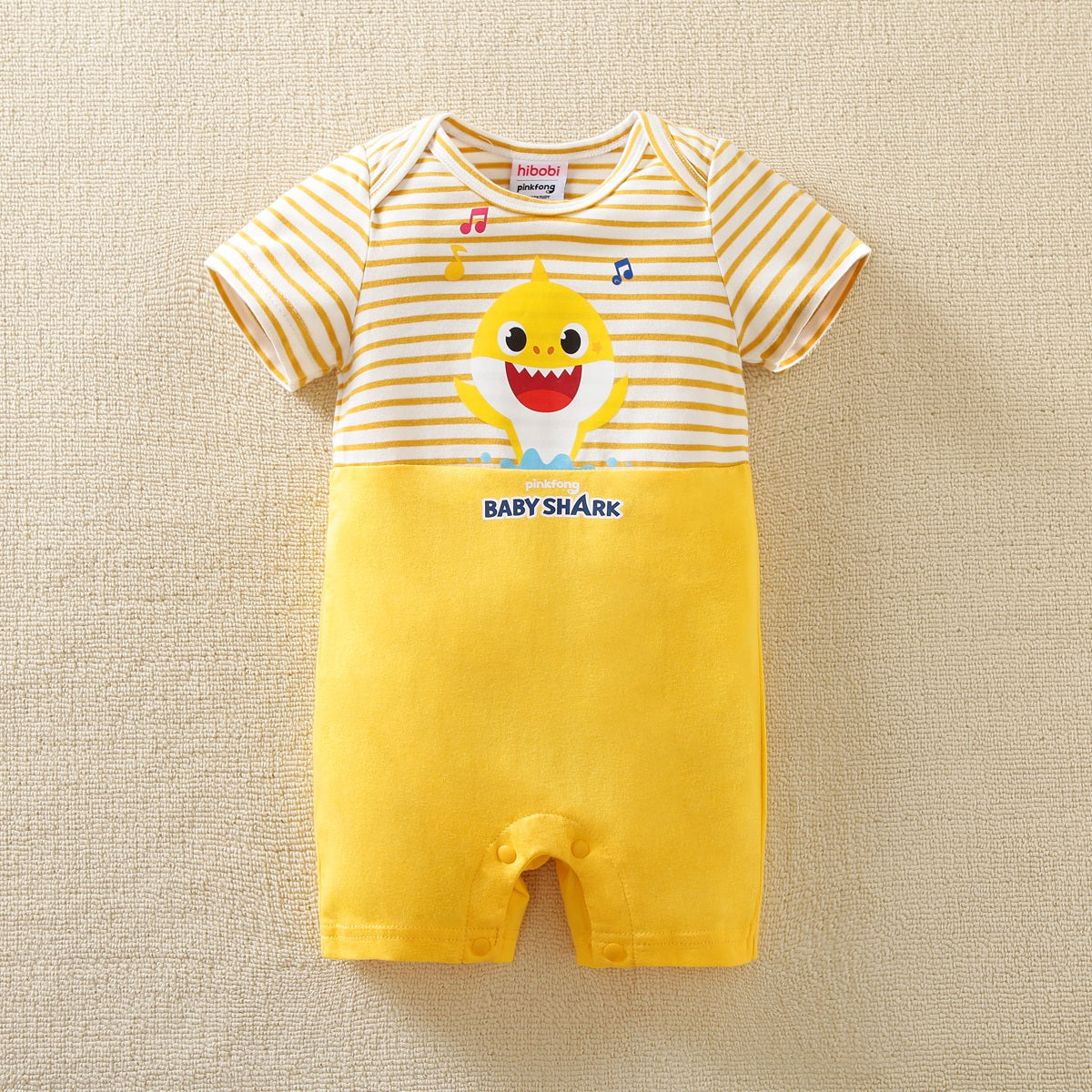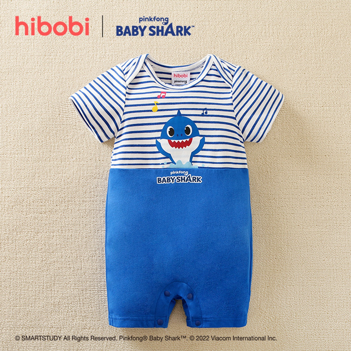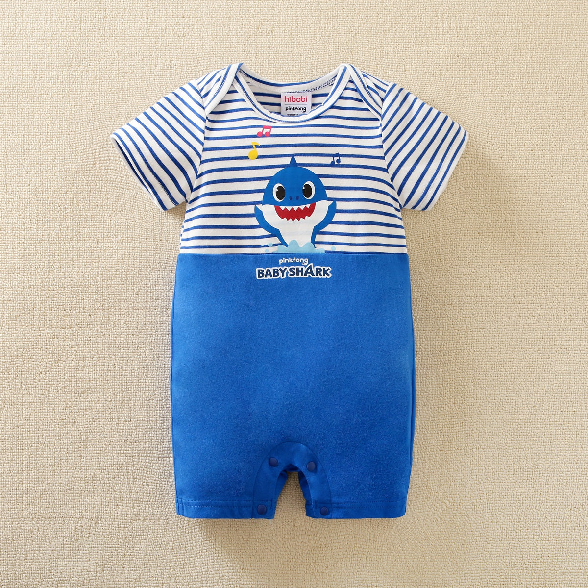 hibobi×Babyshark Baby Cartoon Print & Stripes Short Sleeve Cotton Jumpsuit Wholesale