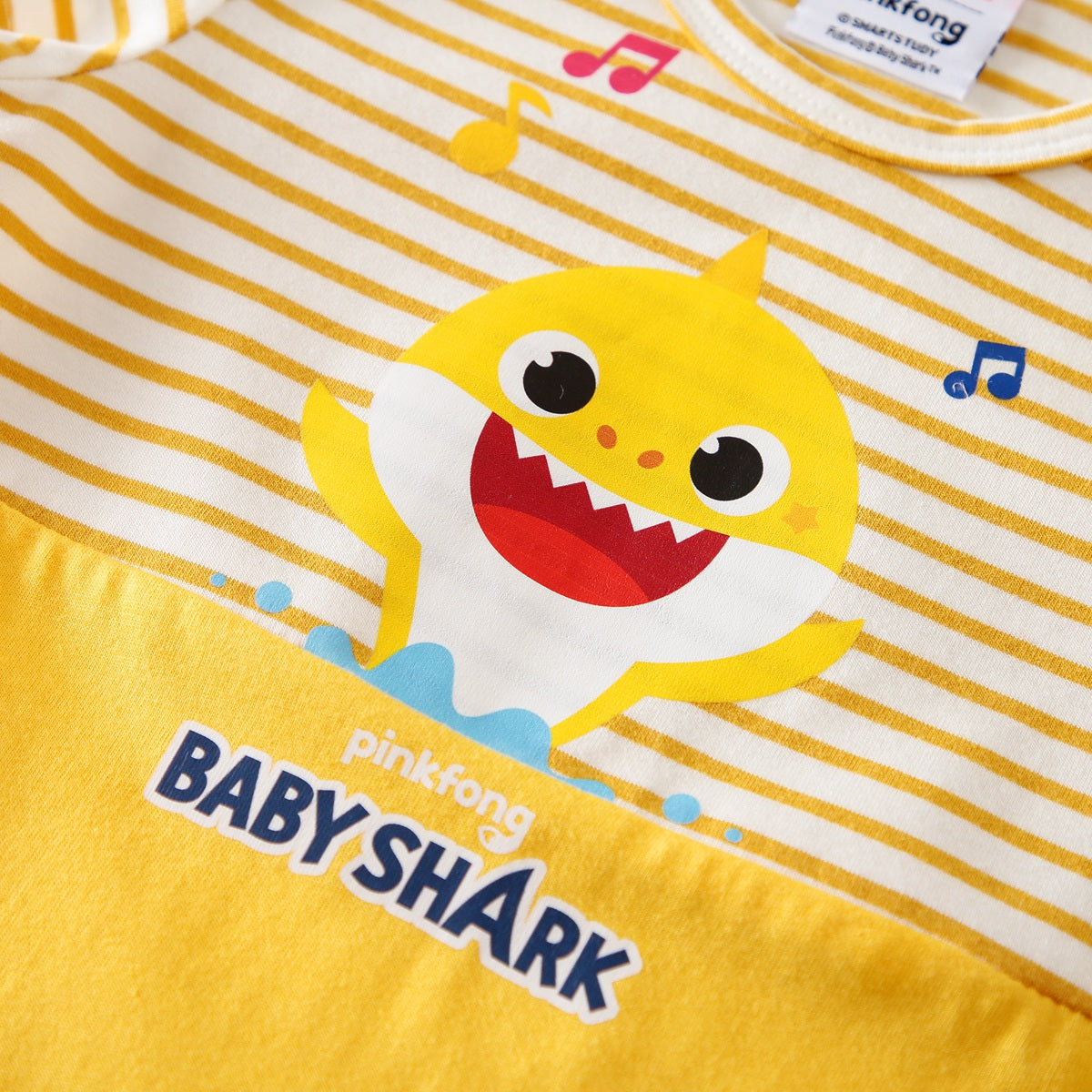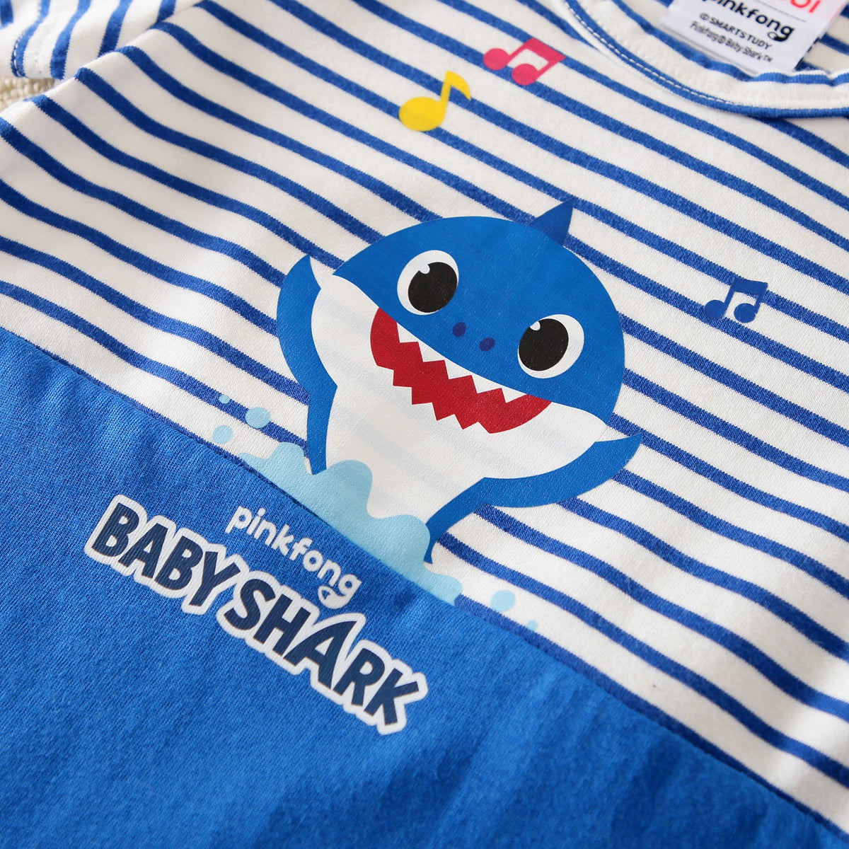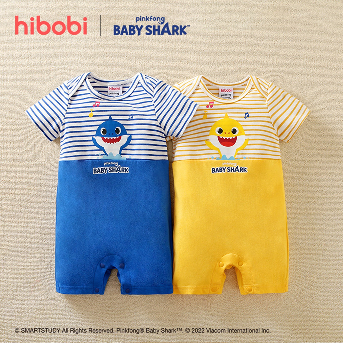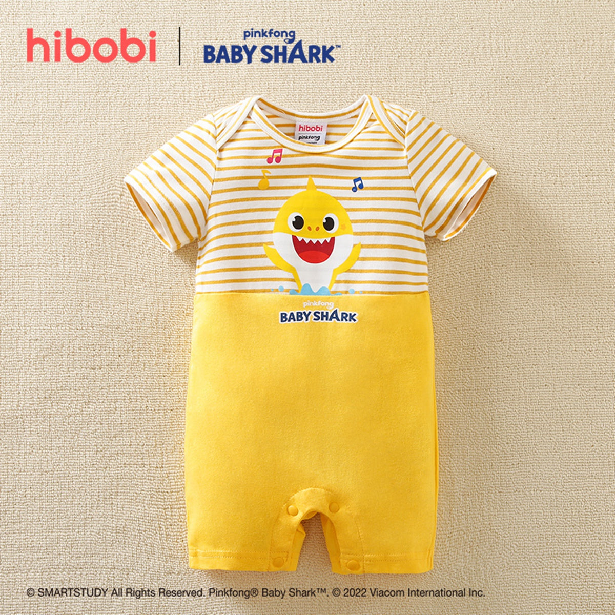 hibobi×Babyshark Baby Cartoon Print & Stripes Short Sleeve Cotton Jumpsuit Wholesale