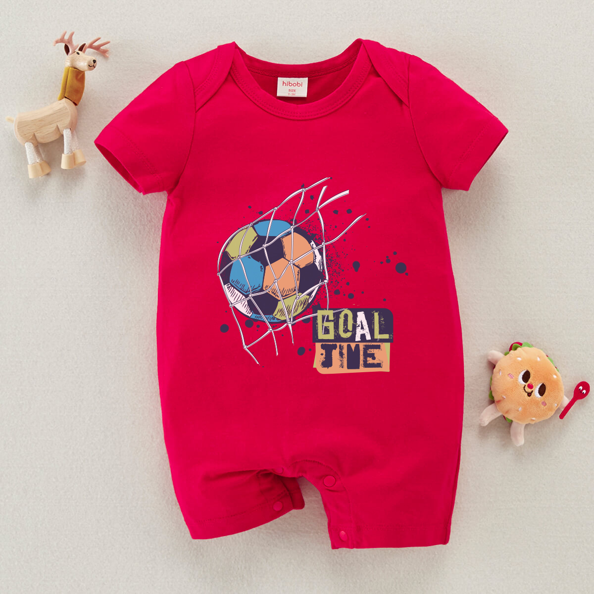 hibobi Boy Baby Colorful Football Shot On Goal Print Short Sleeve Bodysuit Wholesale