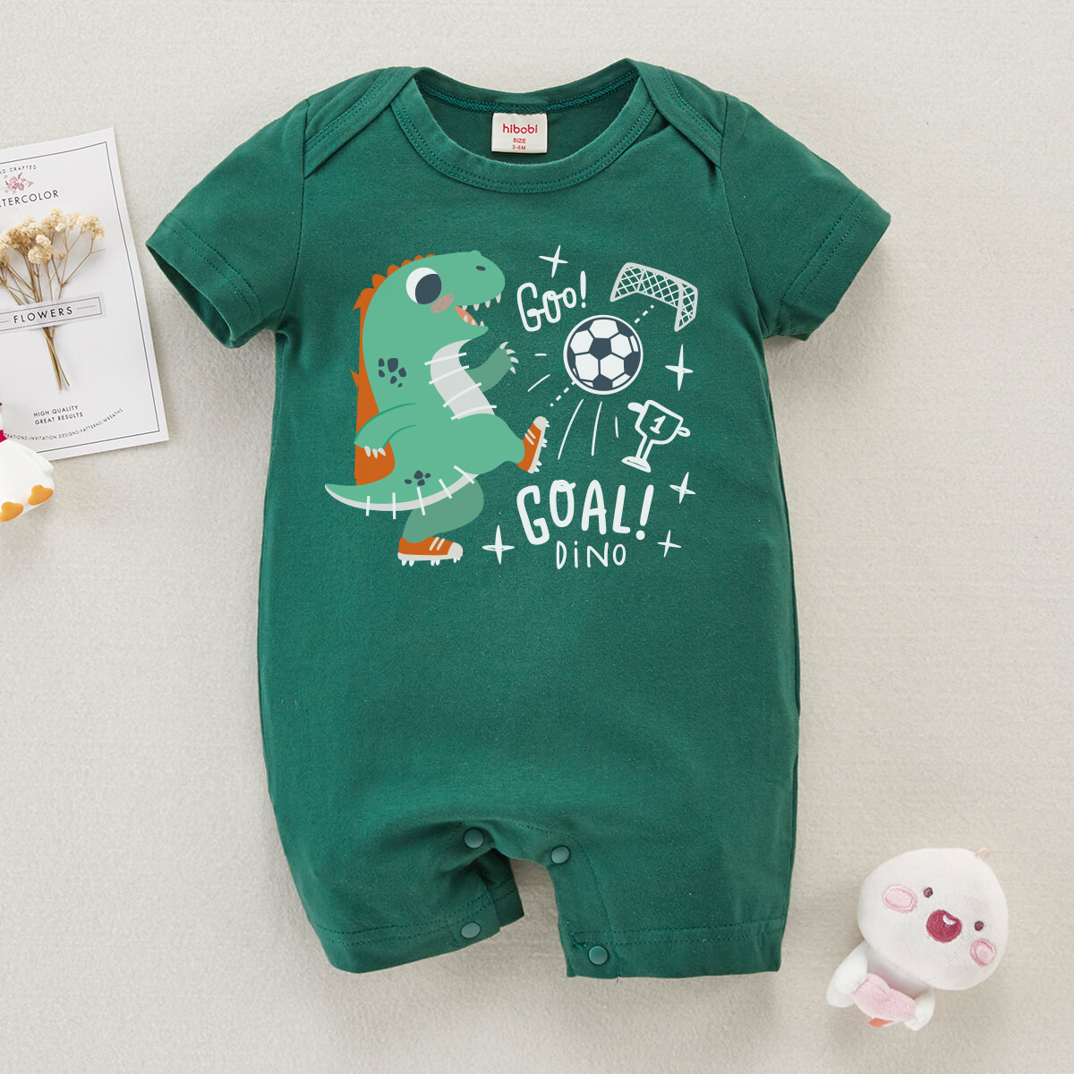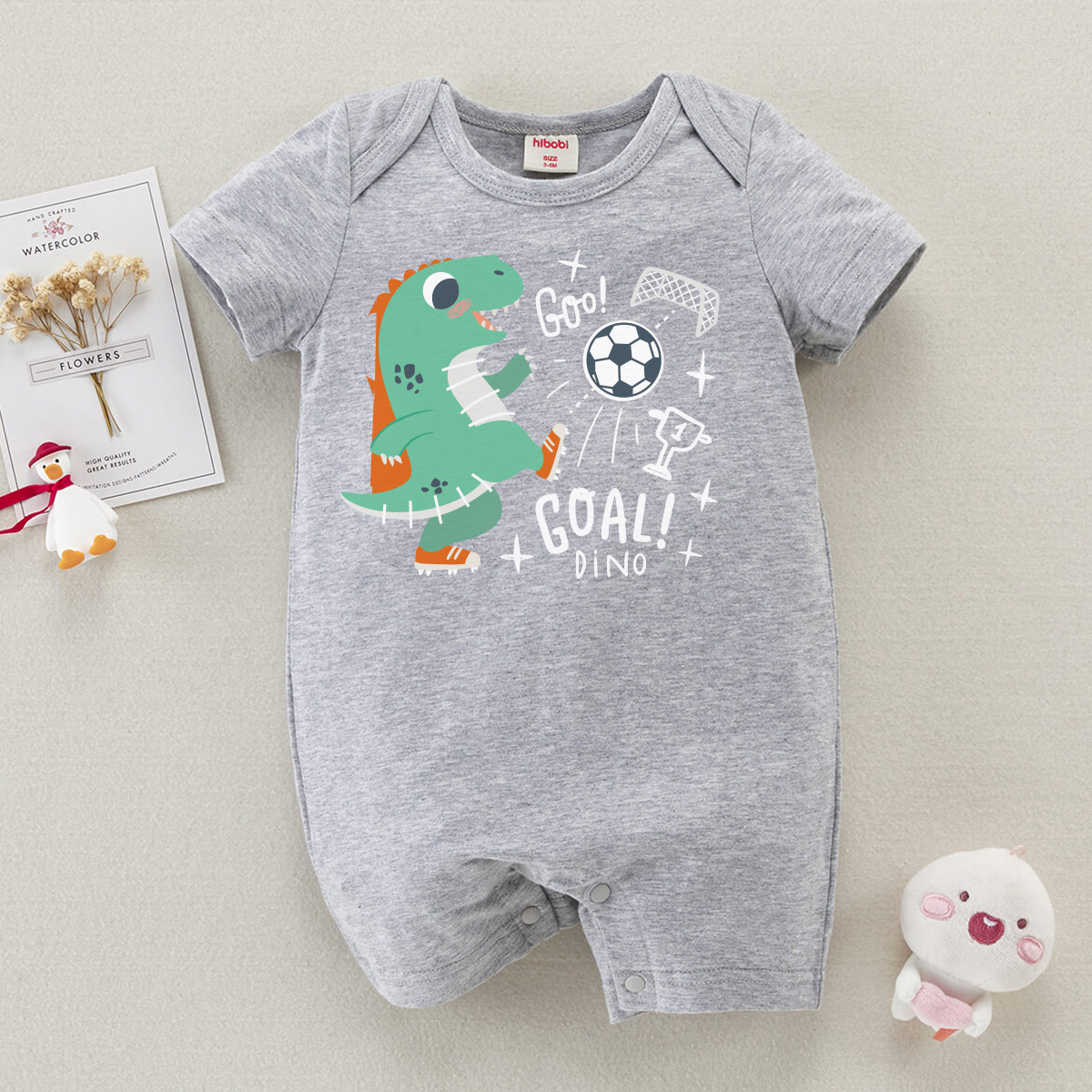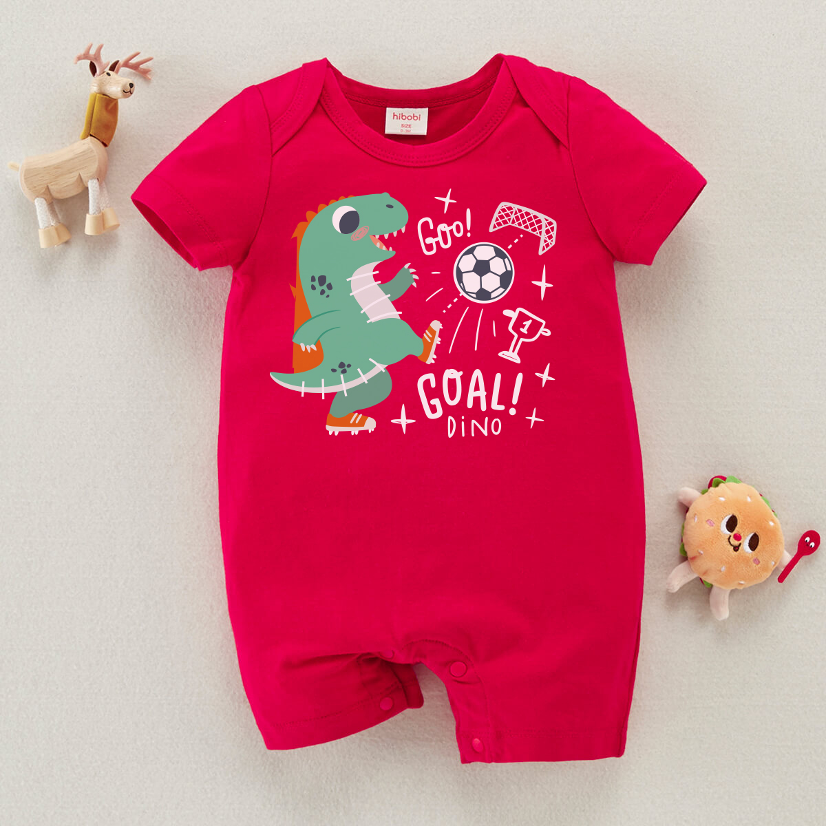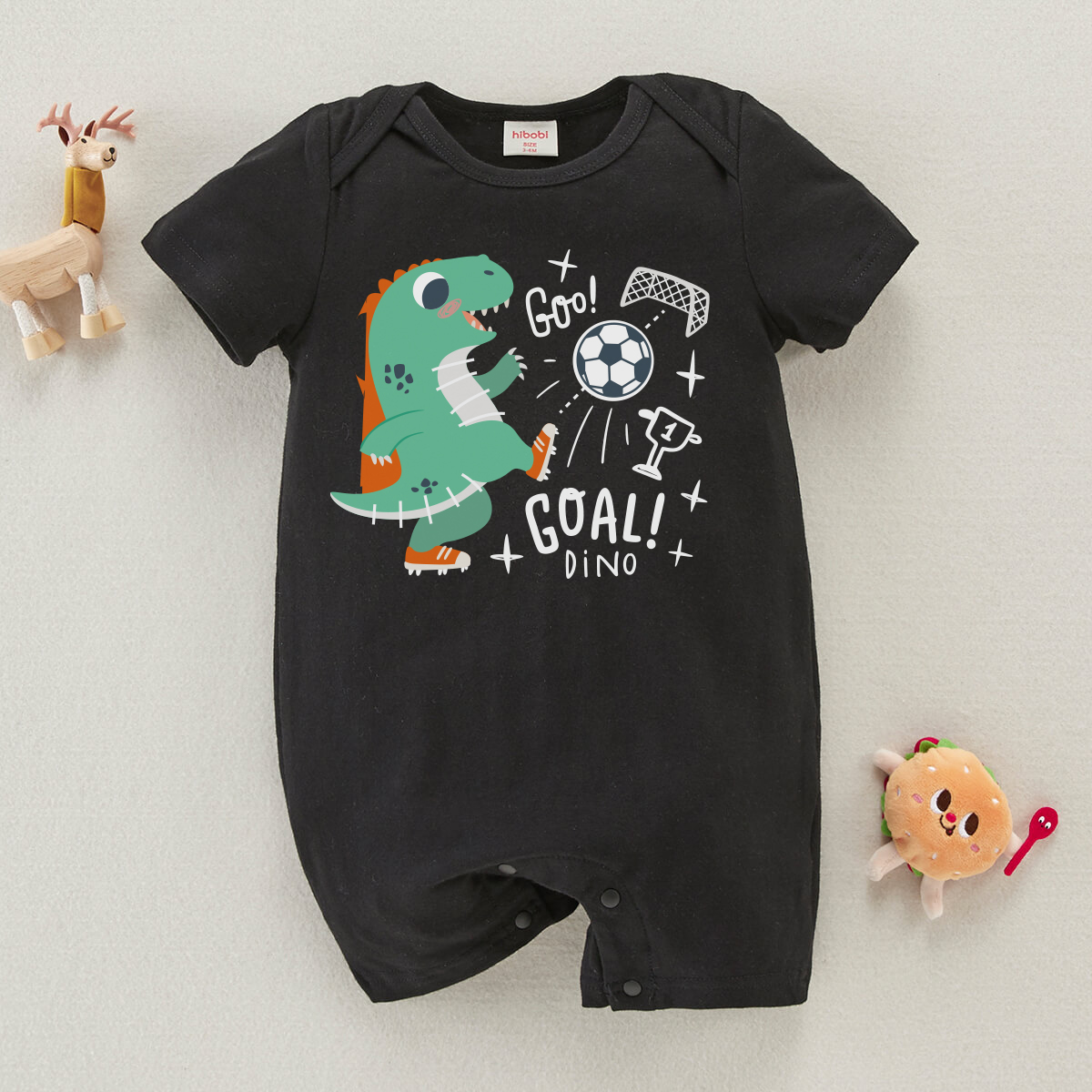 hibobi Boy Baby Dinosaur Football Print Short Sleeve Bodysuit Wholesale