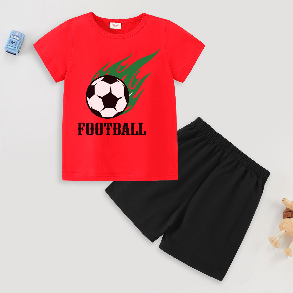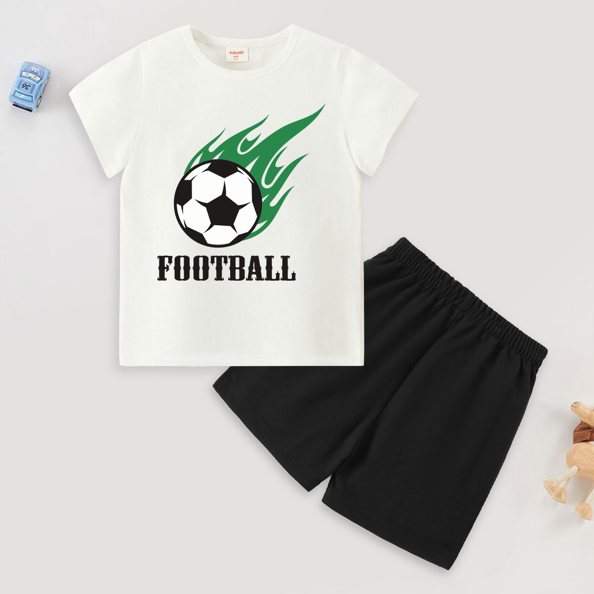 Toddler Boy Baby Football Green Tails Print T-Shirt Set Wholesale
