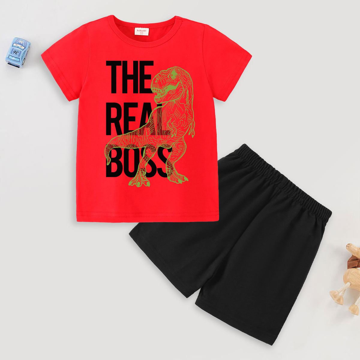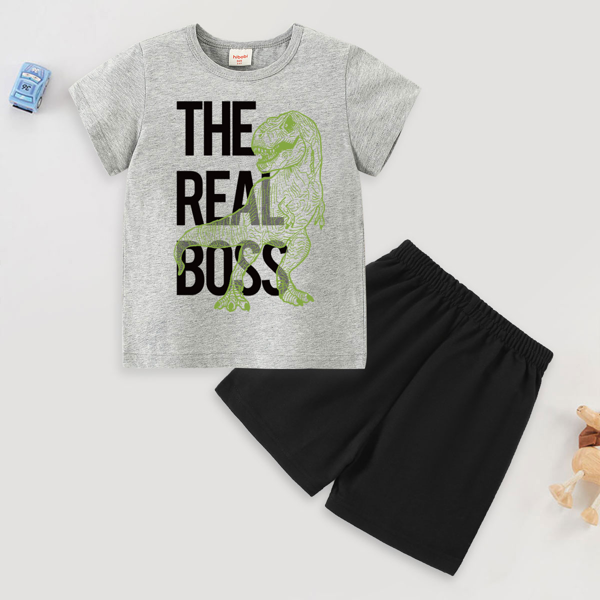 Toddler Boy Lettered Dinosaur Short Sleeve Set Wholesale