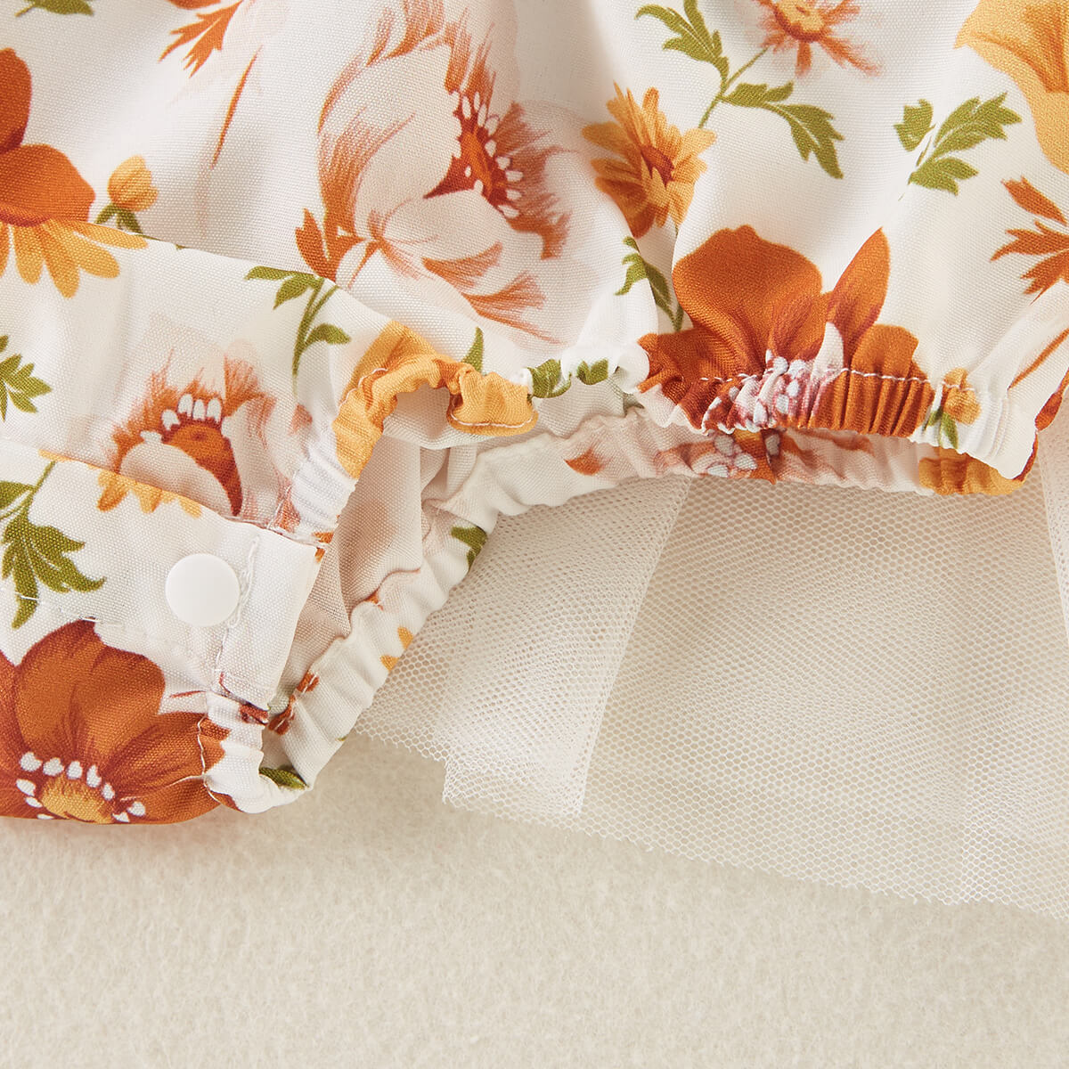 hibobi Girl Baby Floral Print Bow Talter Mesh Dress Wholesale