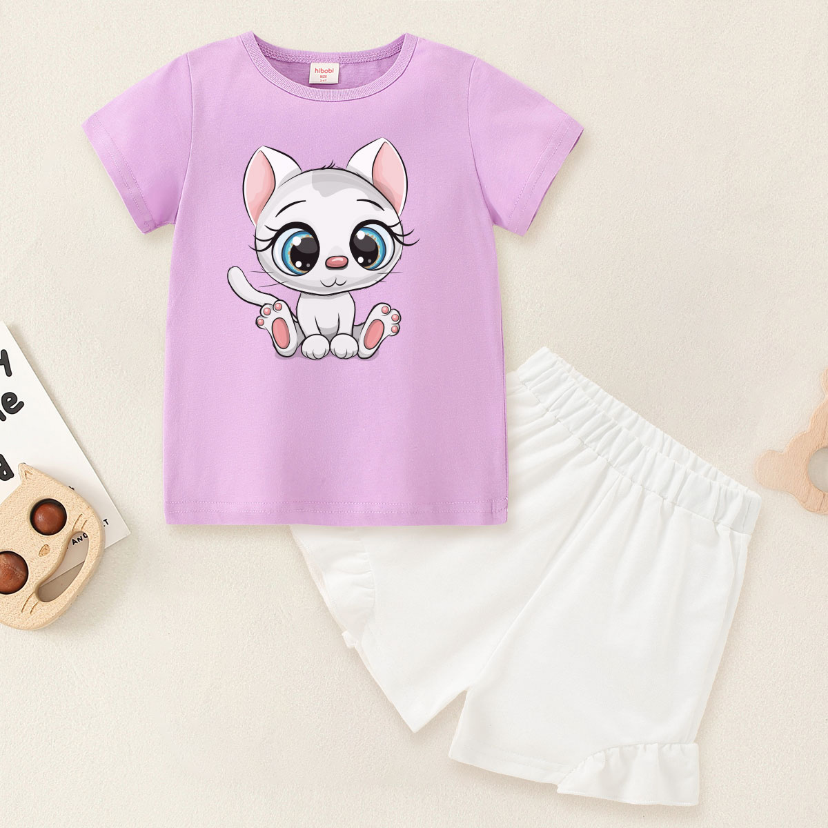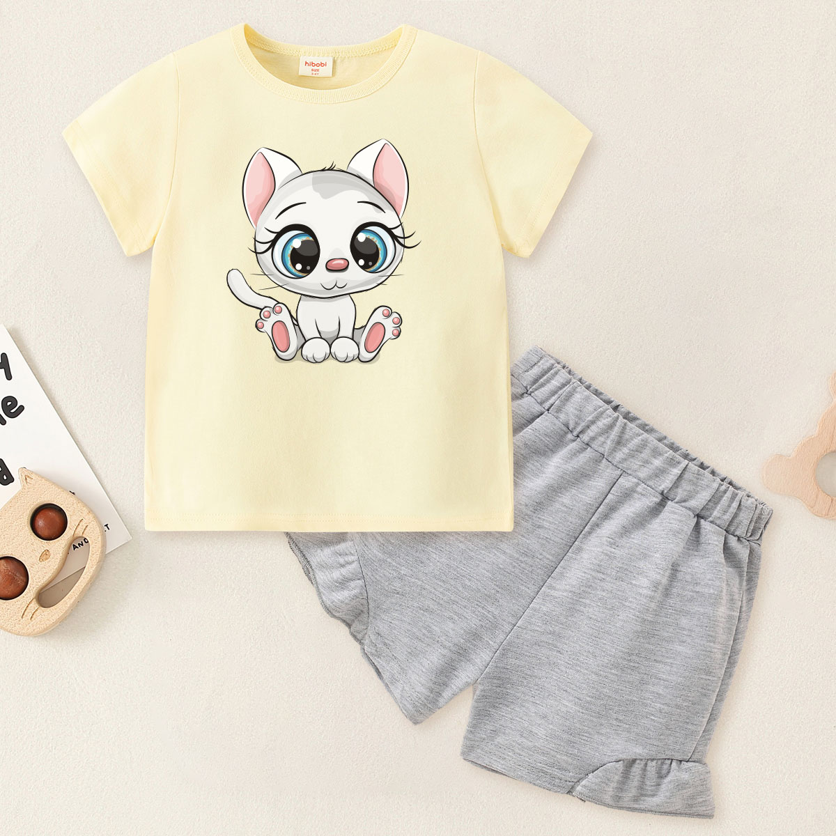 Toddler Girl Baby Sitting Cat T-shirt Suit Wholesale