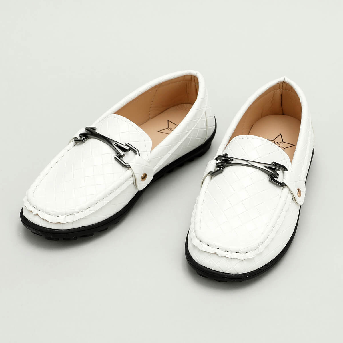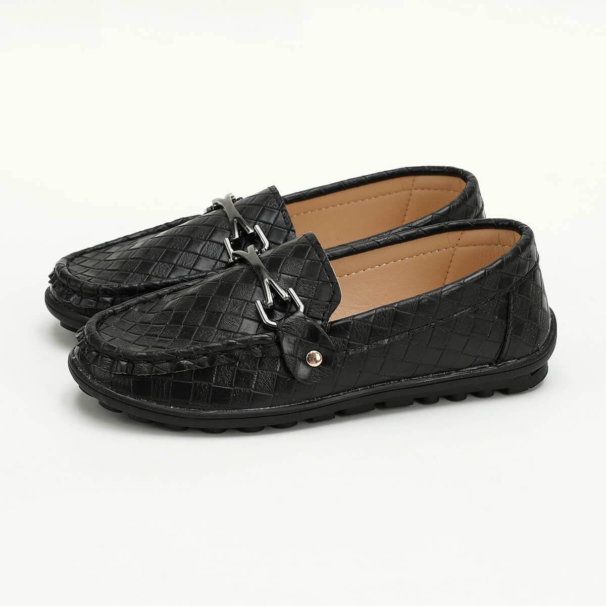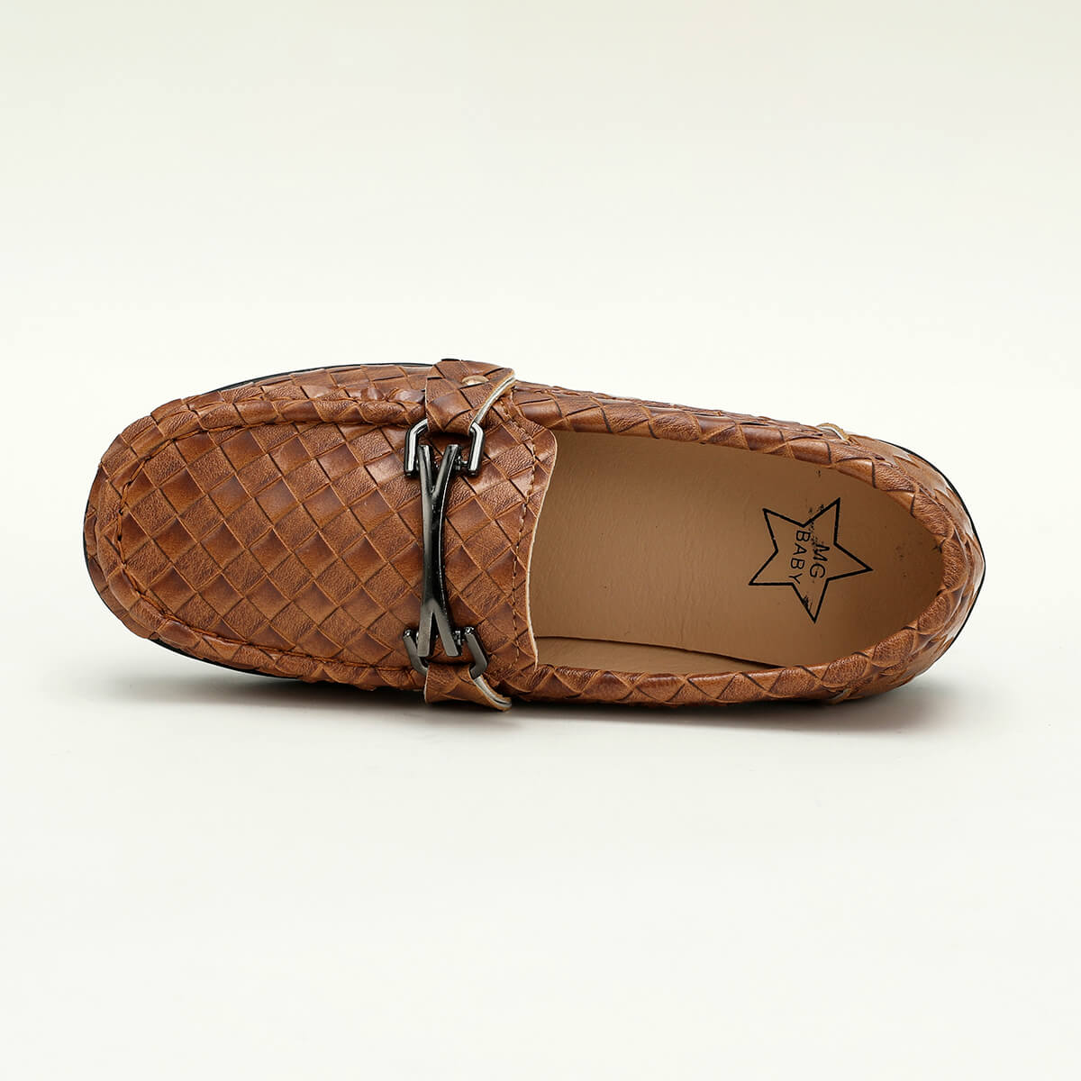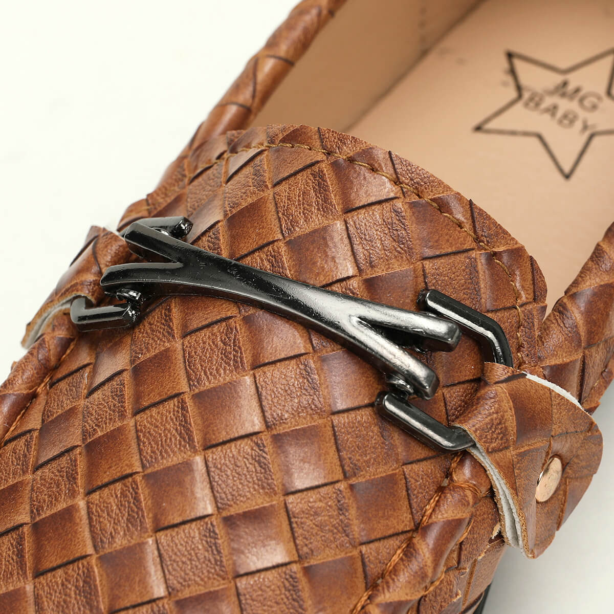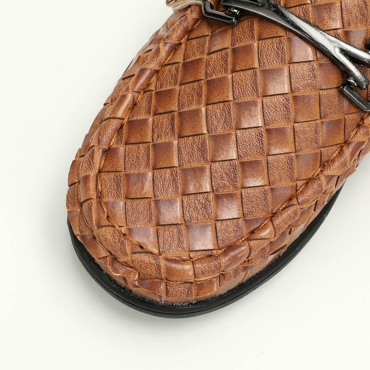 Kid Boy Soft Sole Weave Design Leather Shoes Wholesale