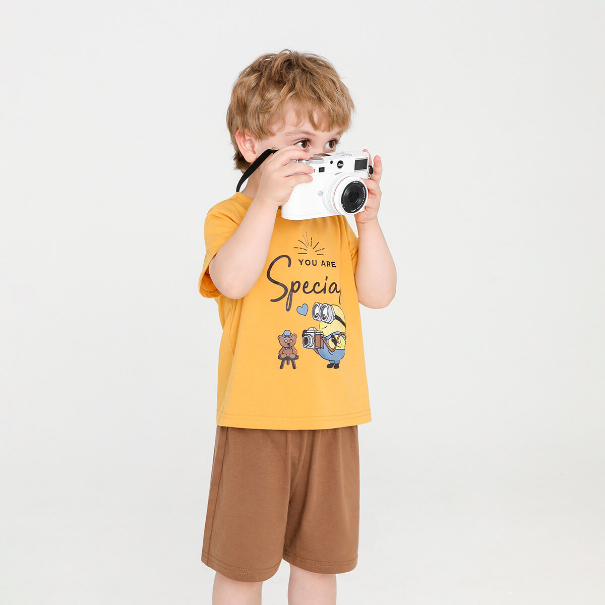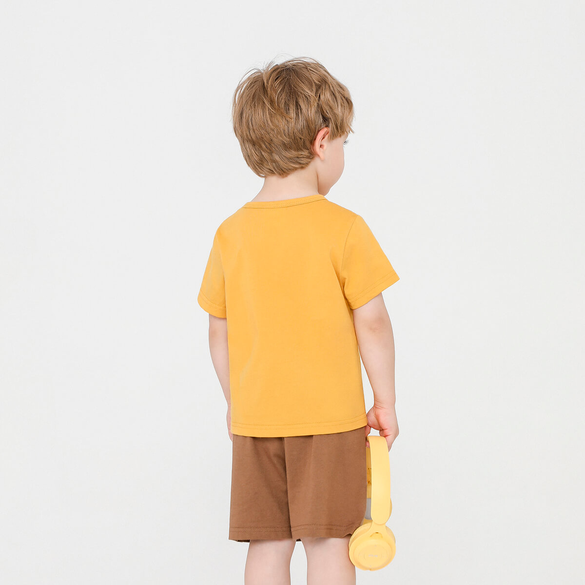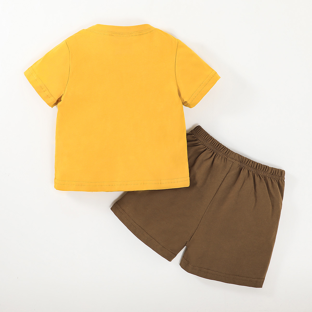Toddler Boy Printed Ginger Top & Brown Shorts Suit Wholesale