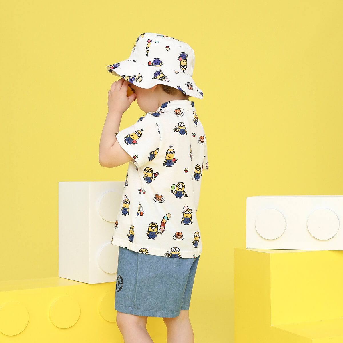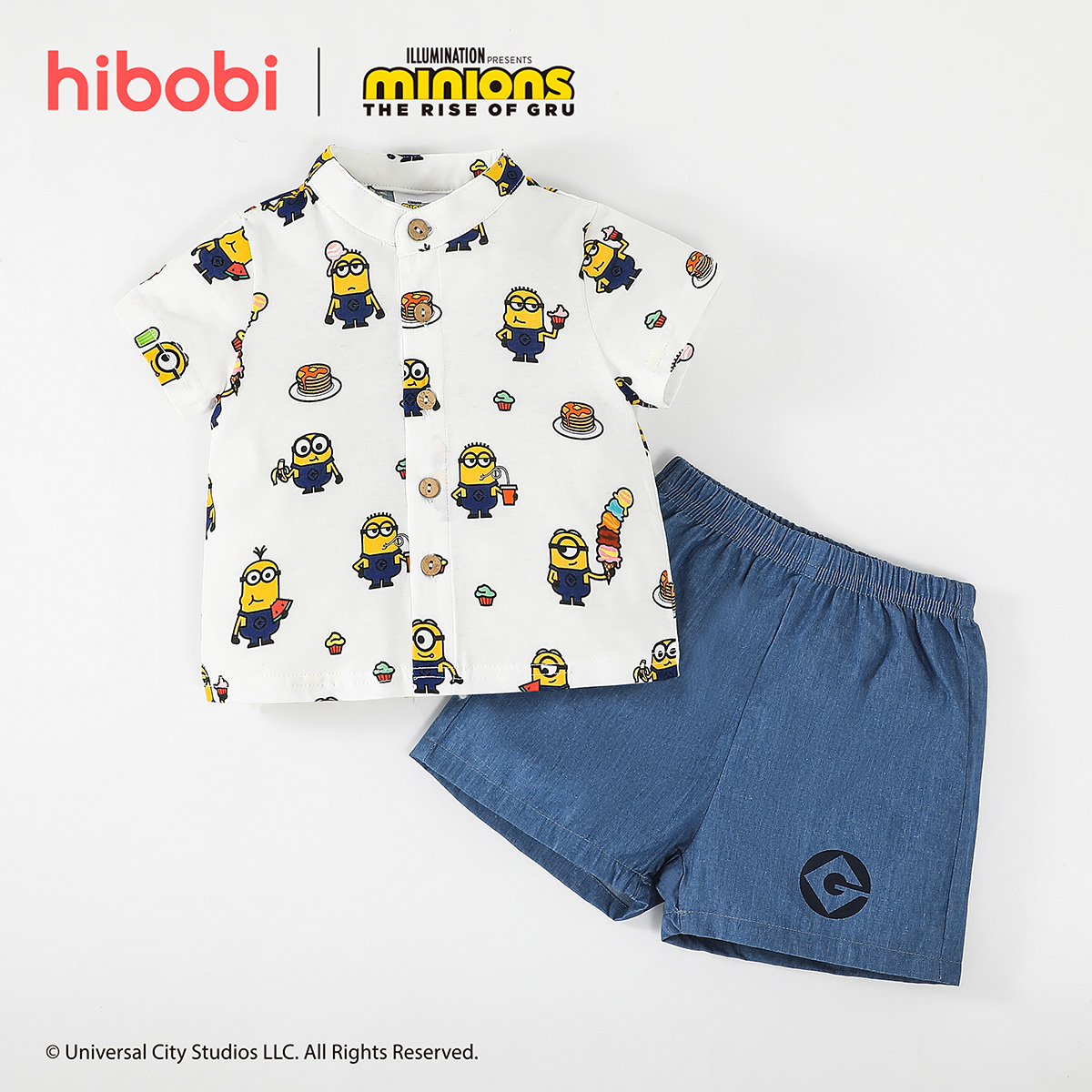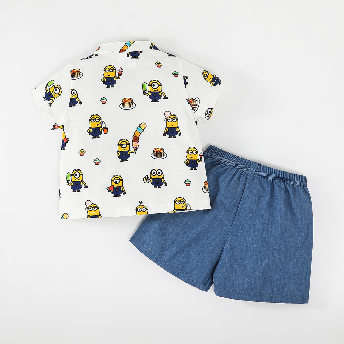 Minions ×Toddler Boy Printed White Shirt & Denim Shorts Set Wholesale