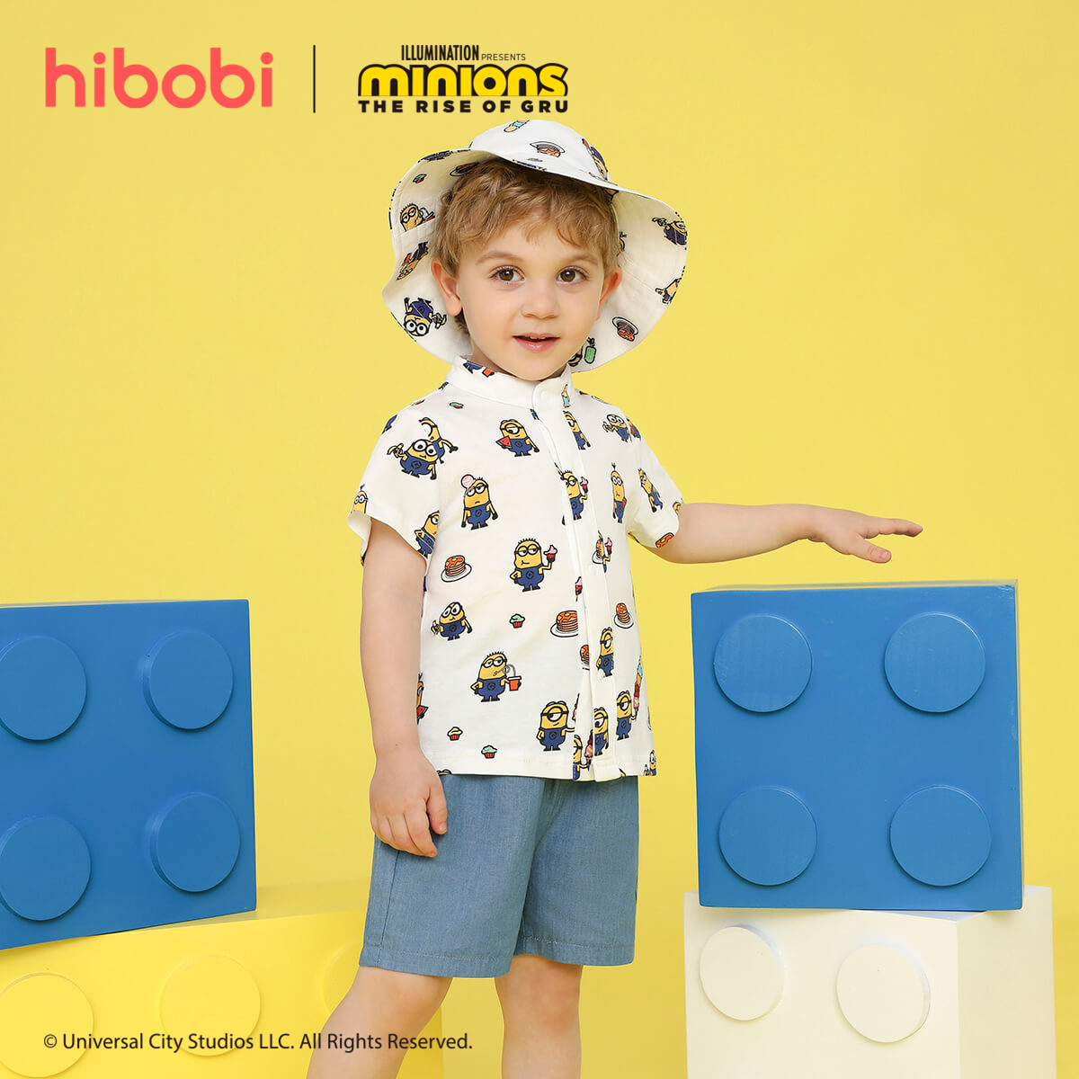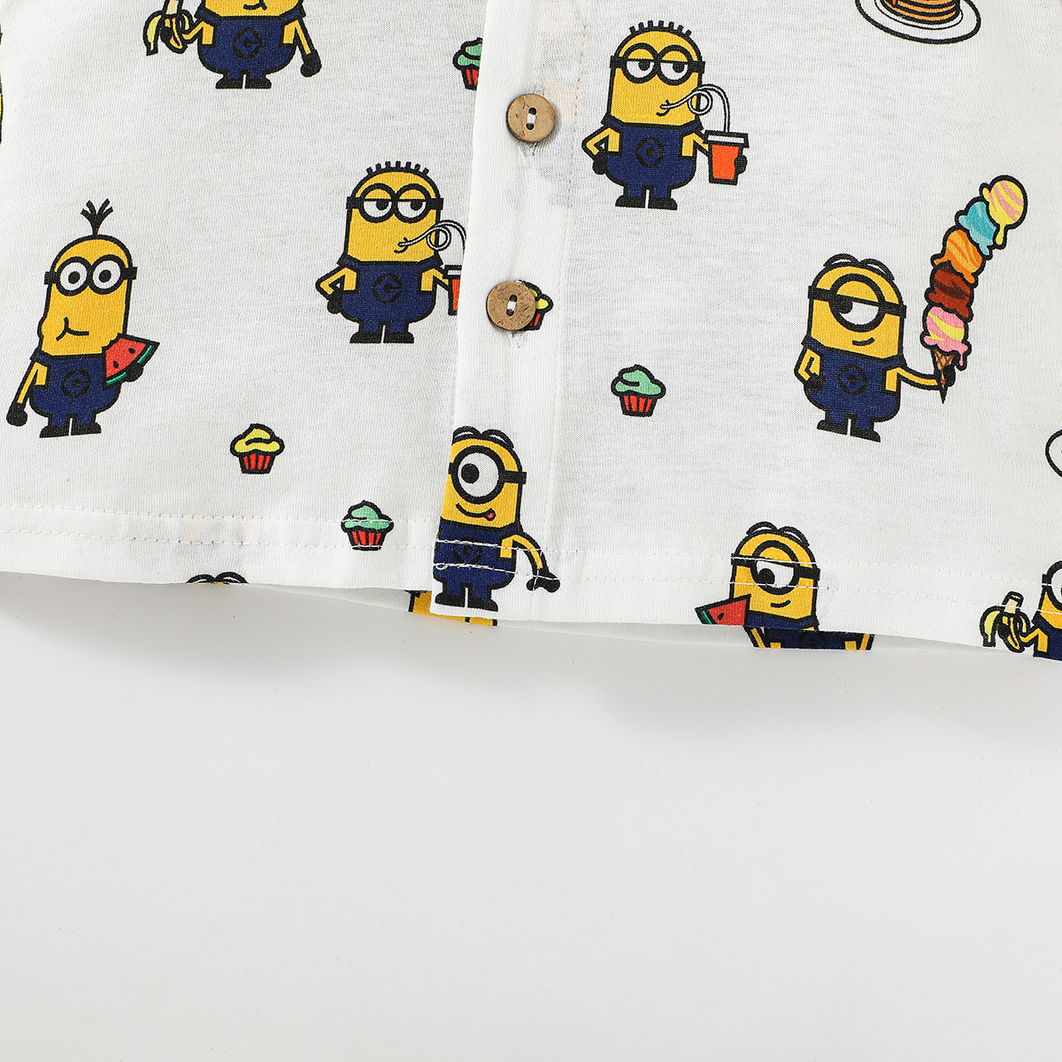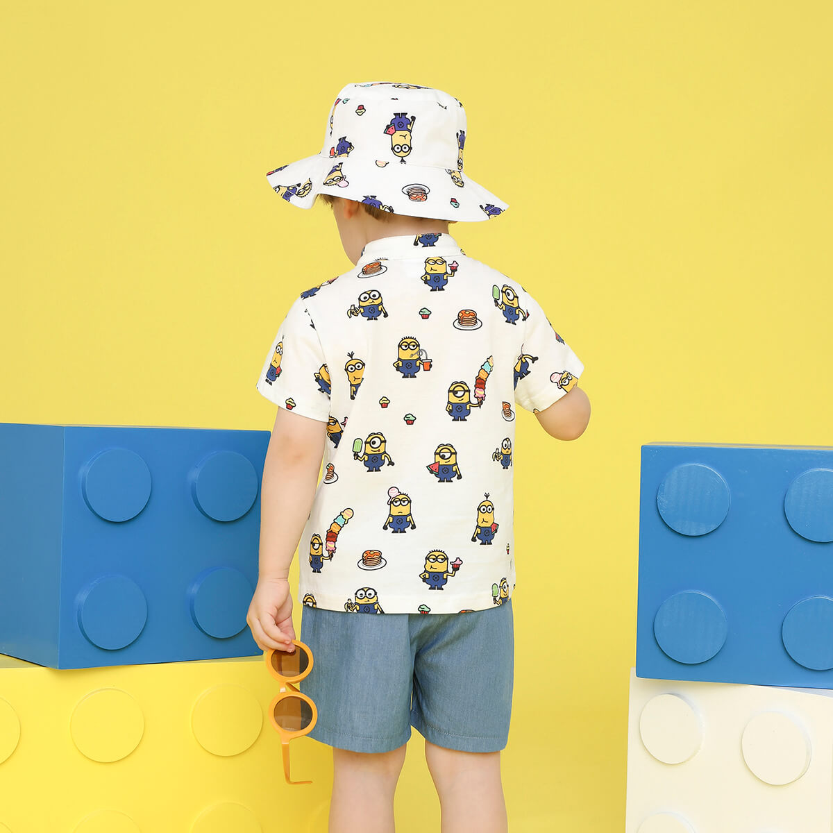 Minions ×Toddler Boy Printed White Shirt & Denim Shorts Set Wholesale