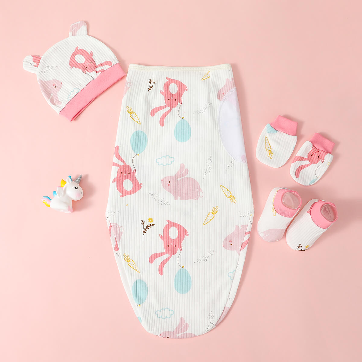 Newborn swaddle baby silkworm sleeping bag baby hat baby gloves baby foot set four pieces Wholesale