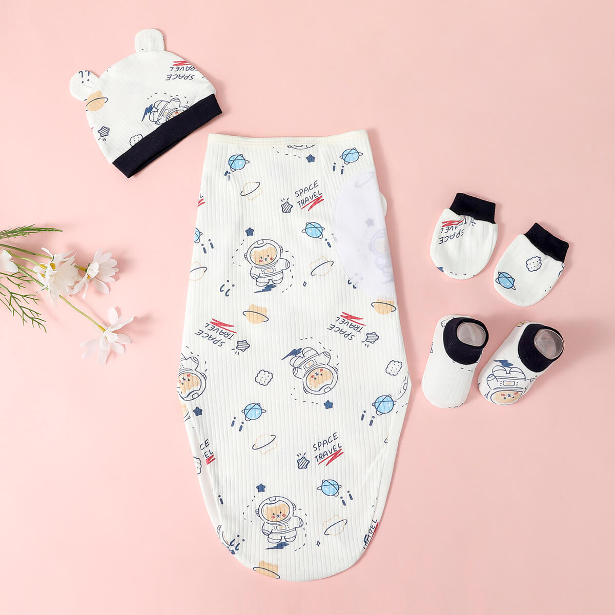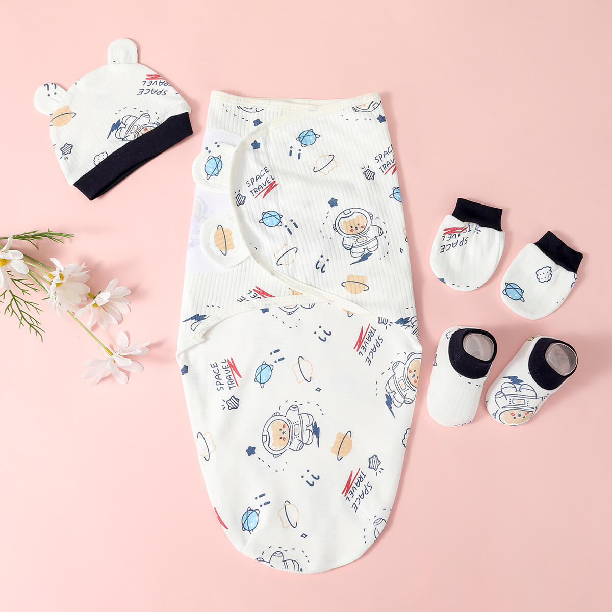 Newborn swaddle baby silkworm sleeping bag baby hat baby gloves baby foot set four pieces Wholesale