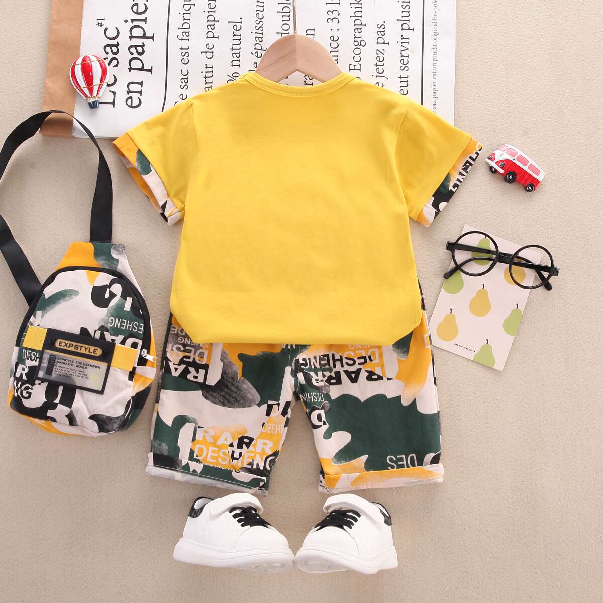 Toddler Boy Casual Cartoon Camouflage T-shirt & Shorts & Bag Wholesale