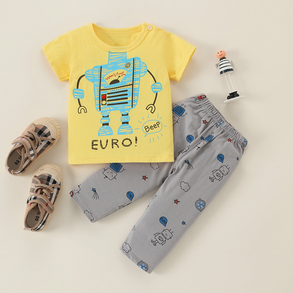 Toddler Boy Cotton Cartoon Casual T-shirt & Trousers Pajamas Wholesale