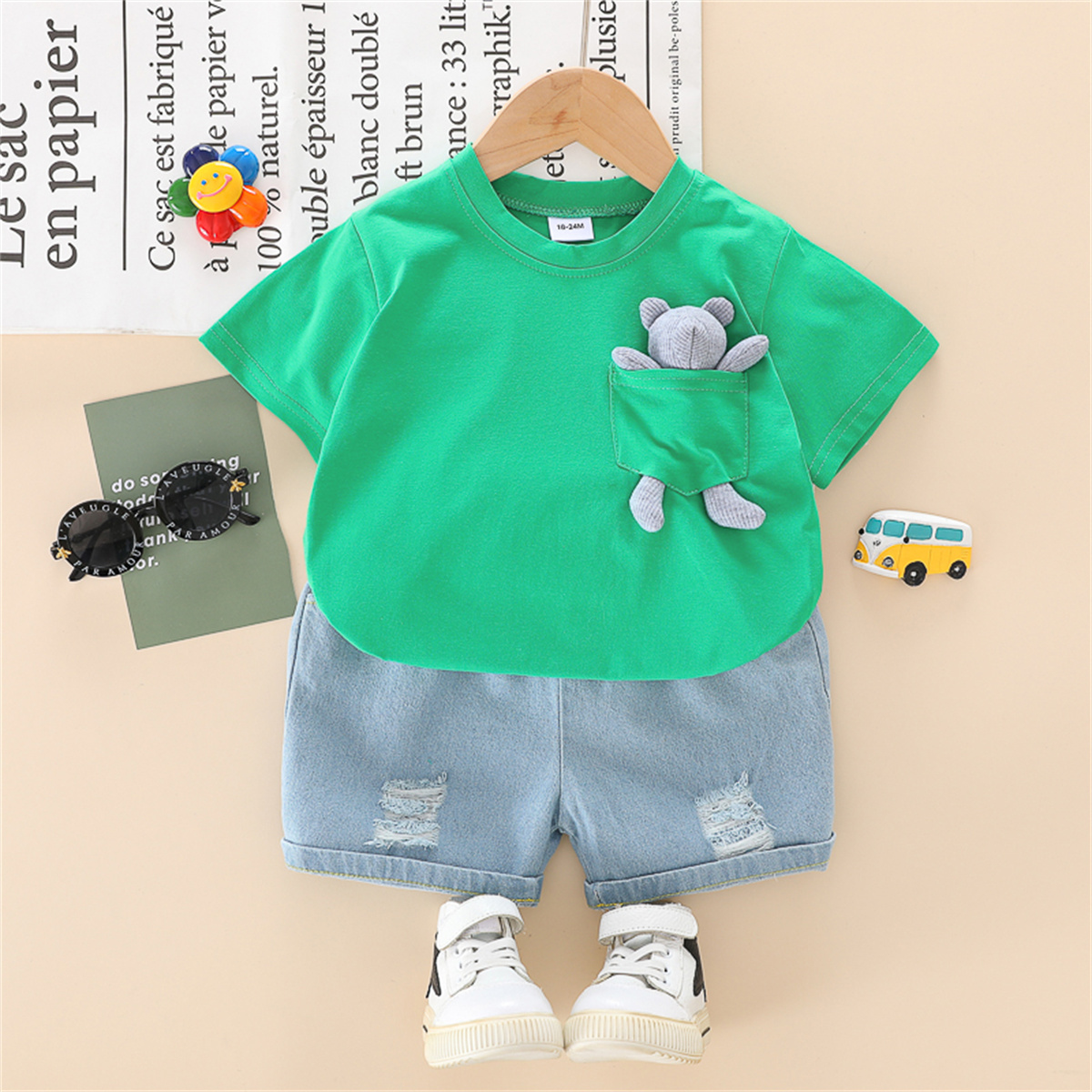 Toddler Boy Solid Bear Rabbit Top & Shorts Wholesale