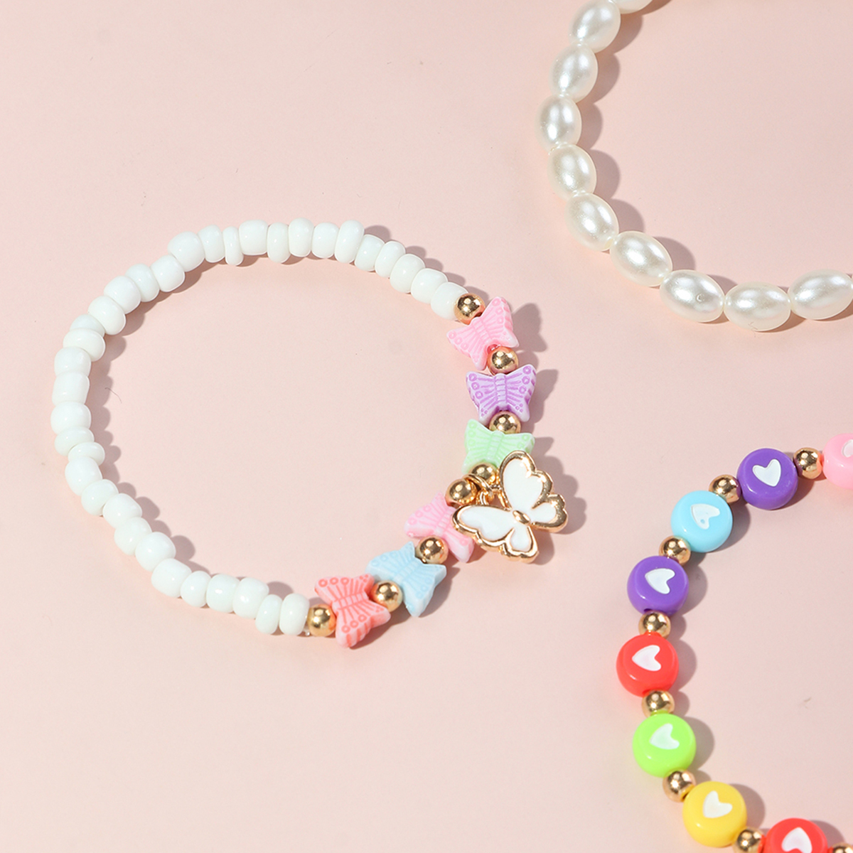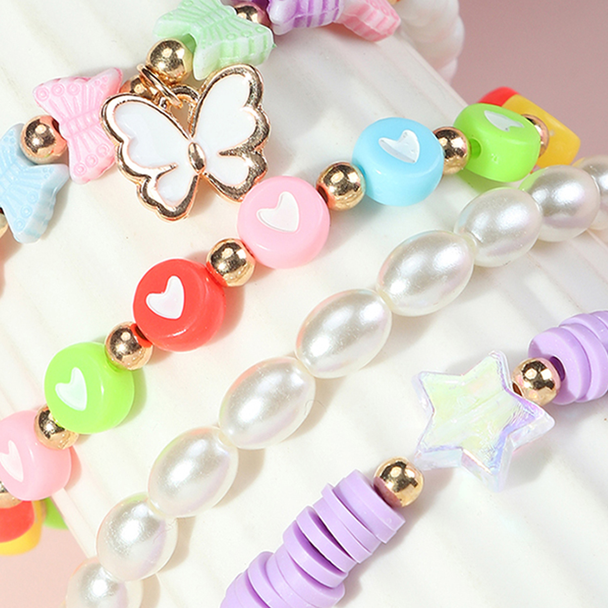 Toddler Girl 4-Pieces Colored Pearls Bracelet Wholesale