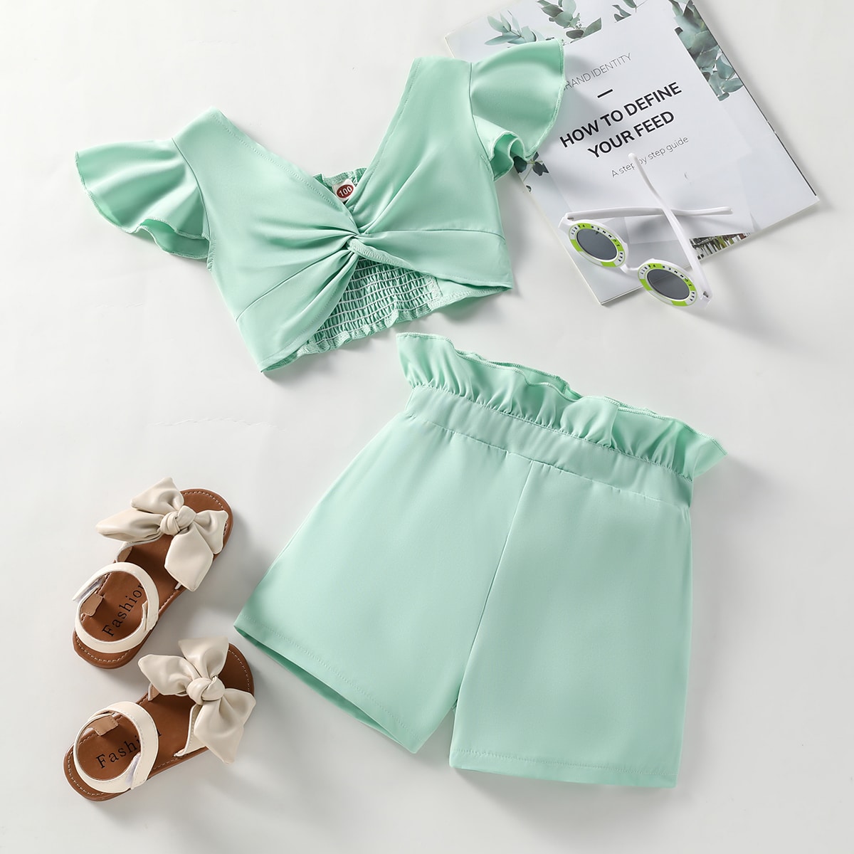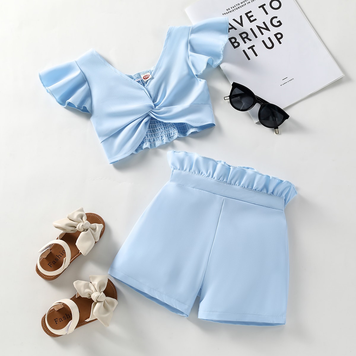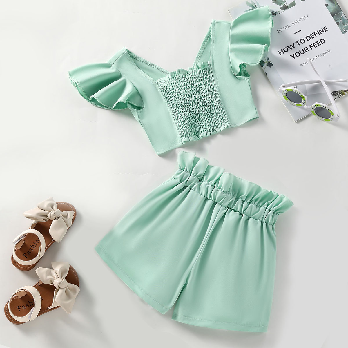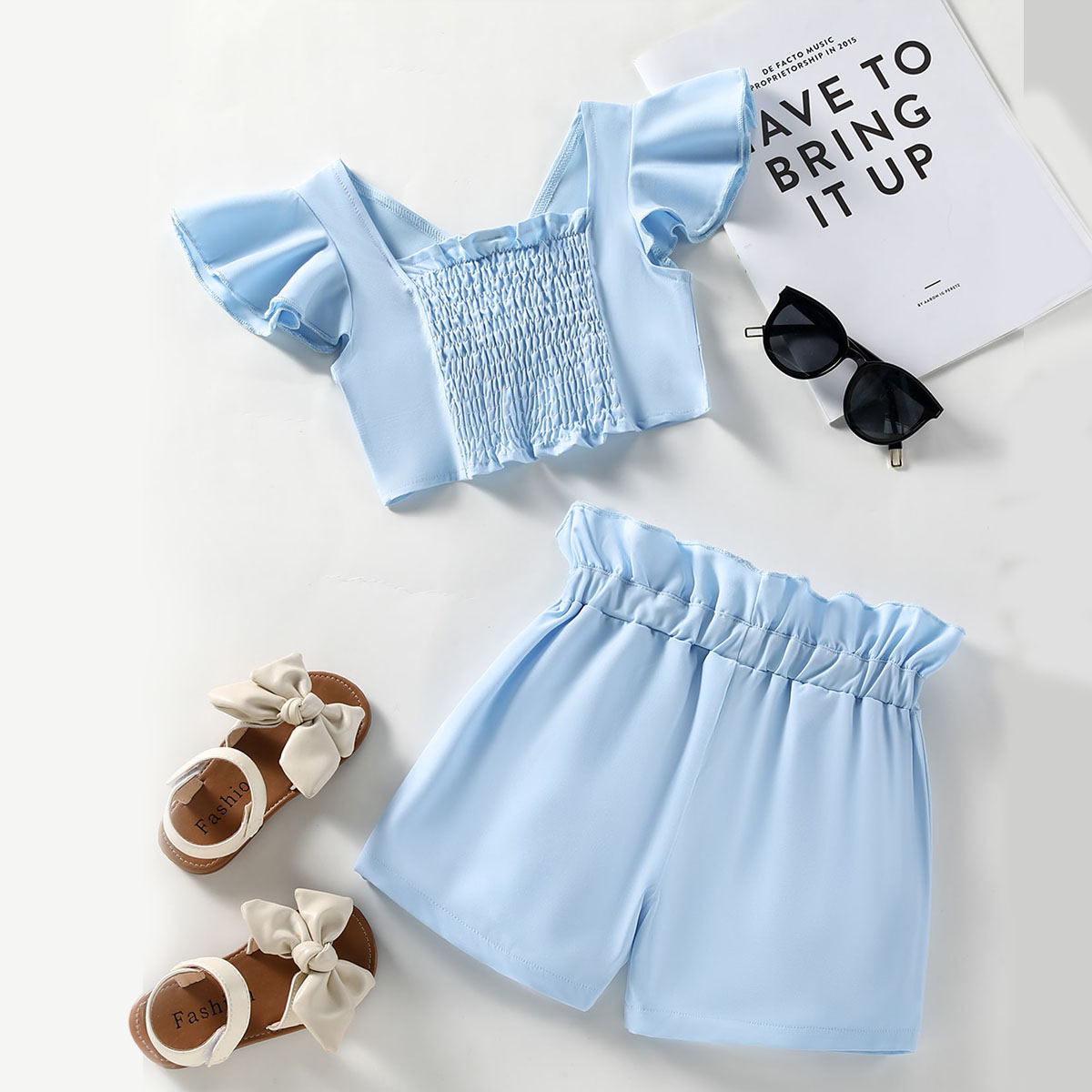 Toddler Girl Casual Solid Color Fly Sleeves Tank Top & Shorts Wholesale