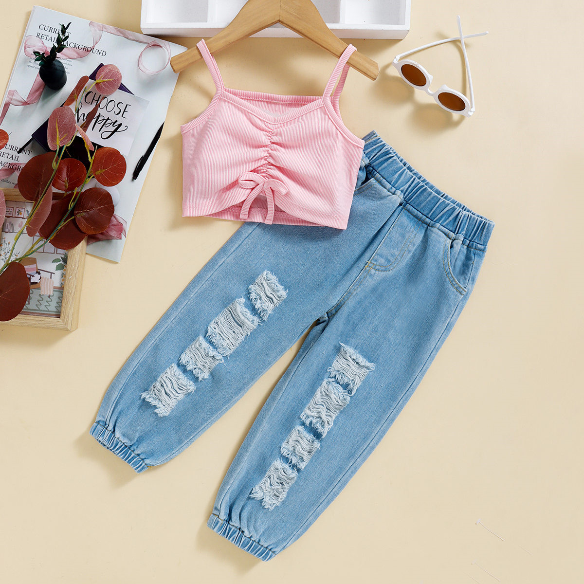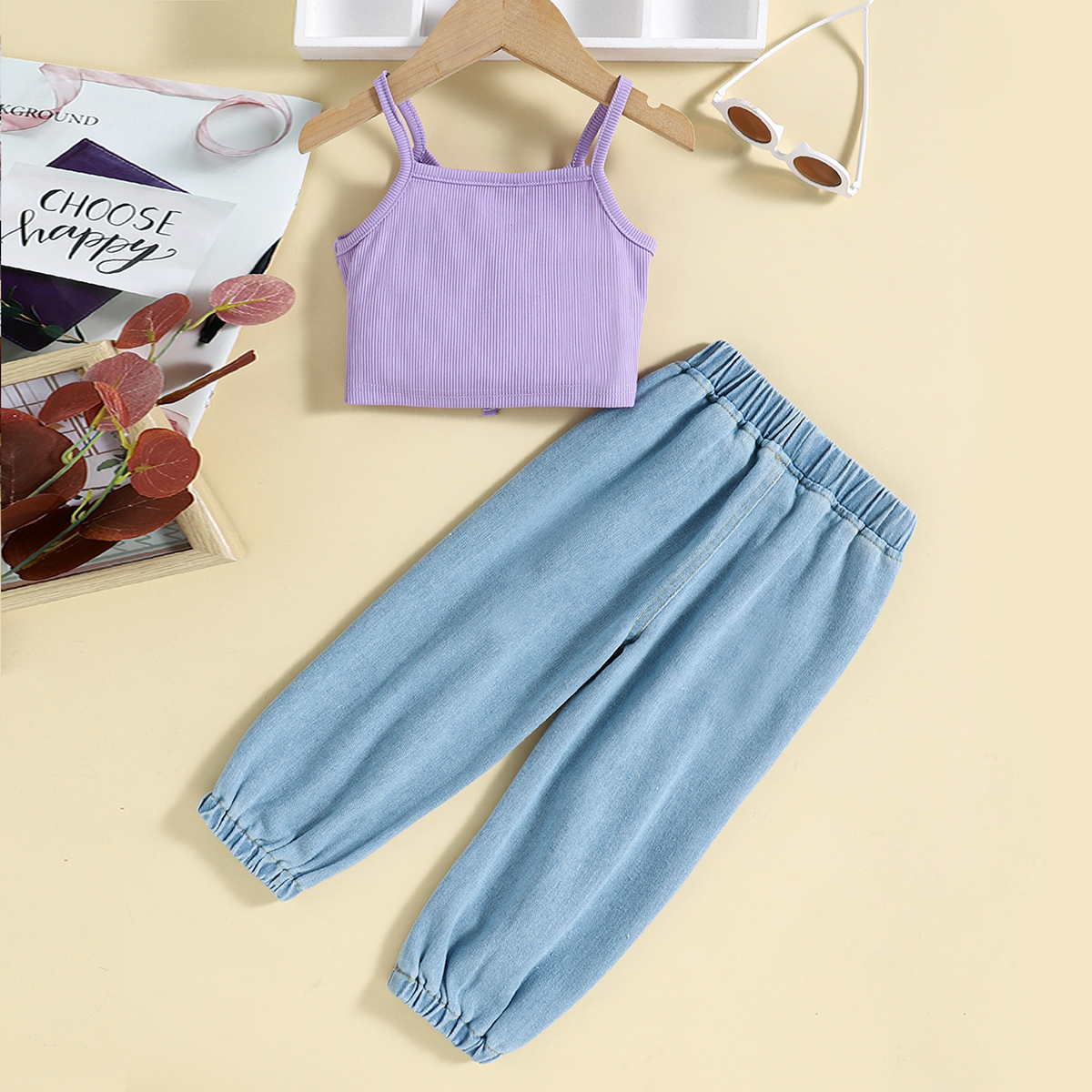 Toddler Girl Casual Solid Color Vest Top & Jeans Wholesale