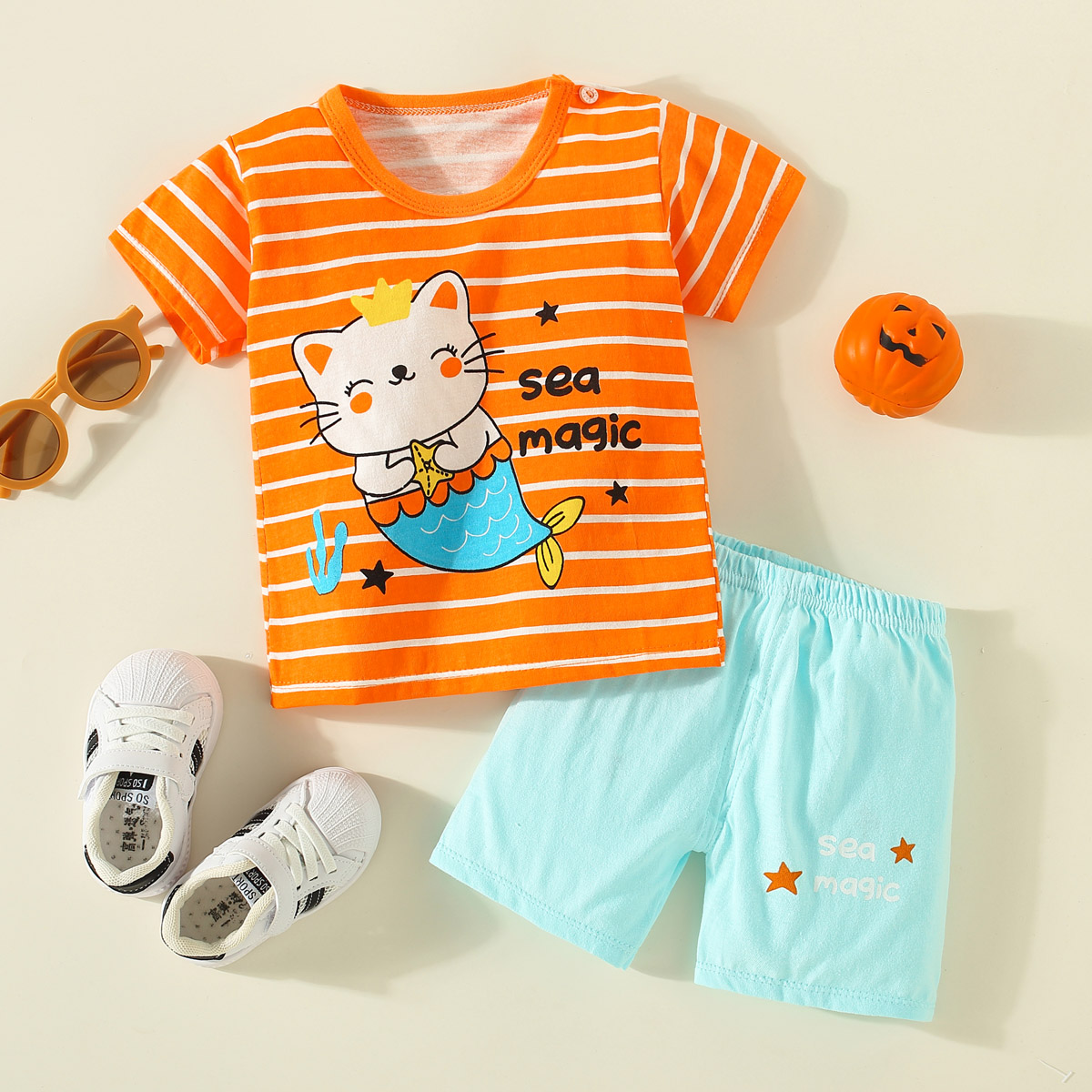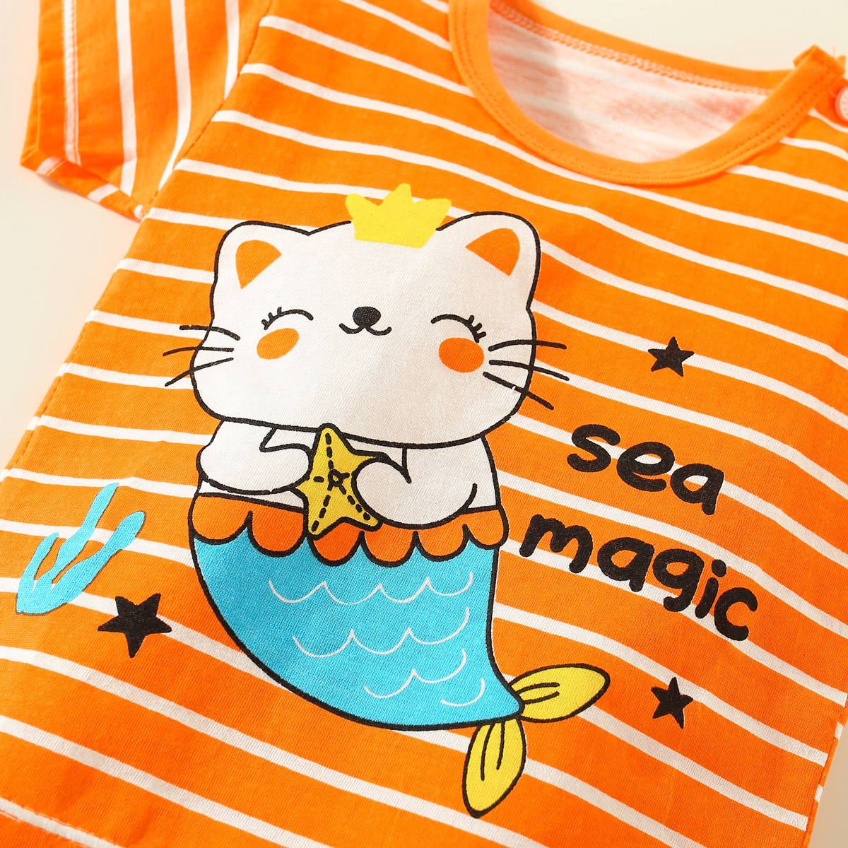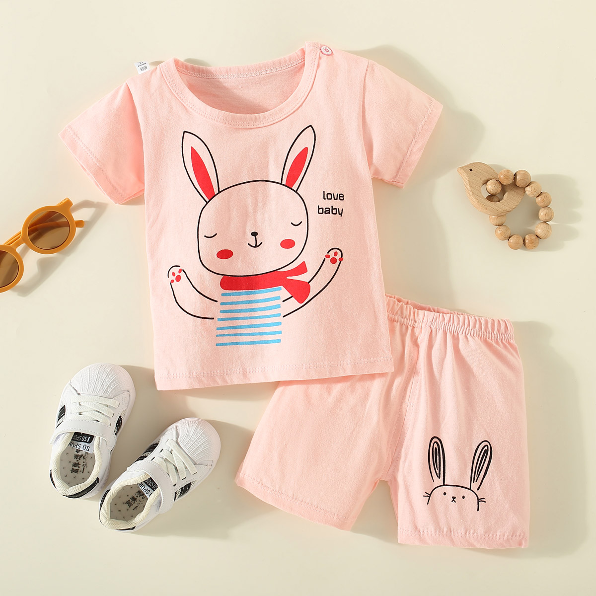 Toddler Girl Cute Daily Letter Stripes Rabbit Cat Pajamas Sets Top & Shorts Wholesale