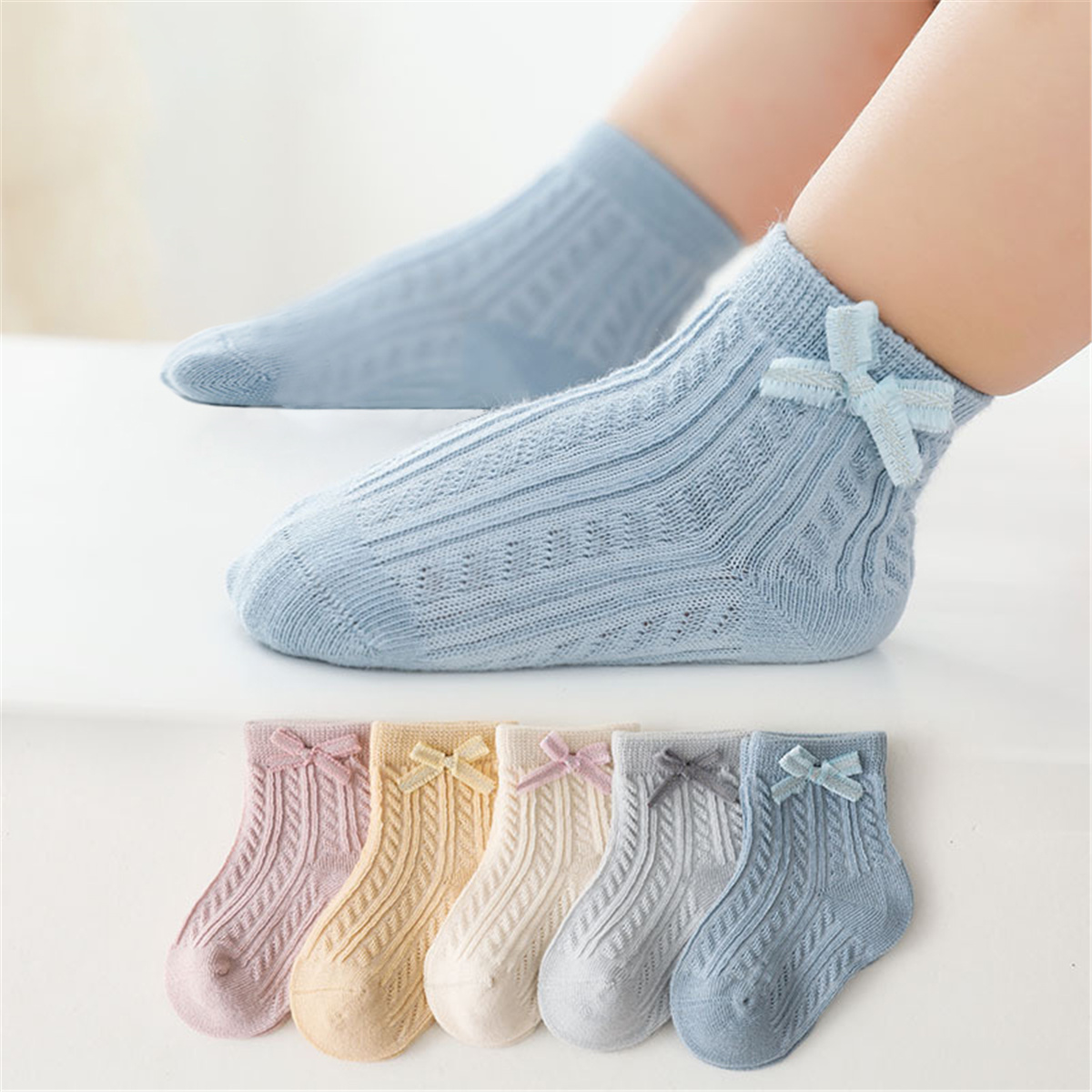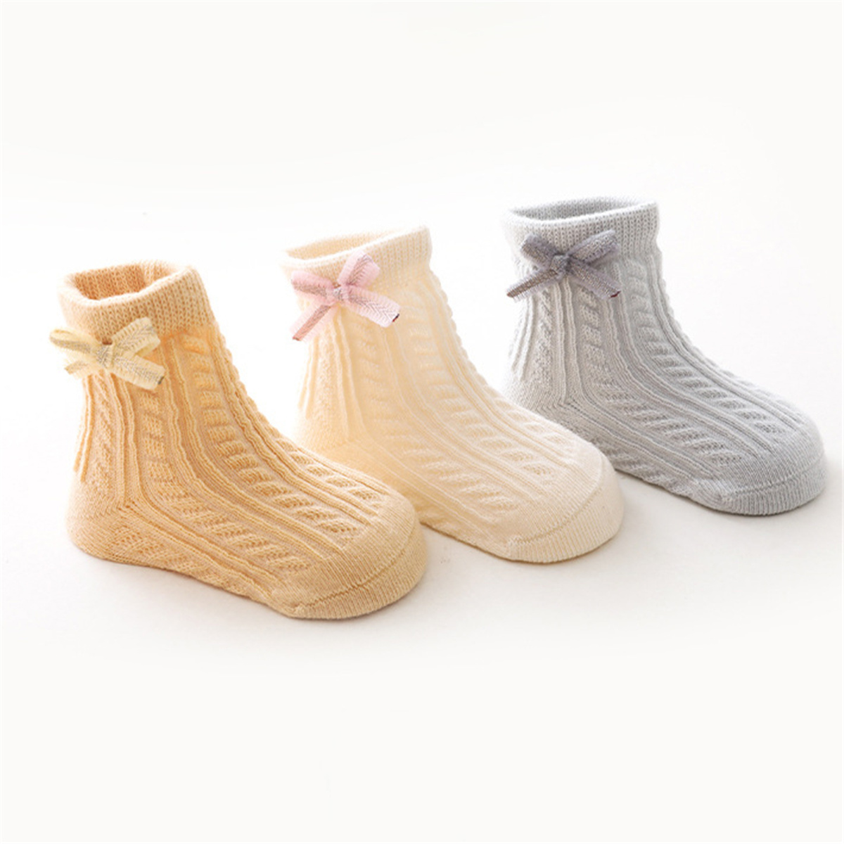 Toddler Girl Solid Color Bowknot Knee-High Stockings Wholesale