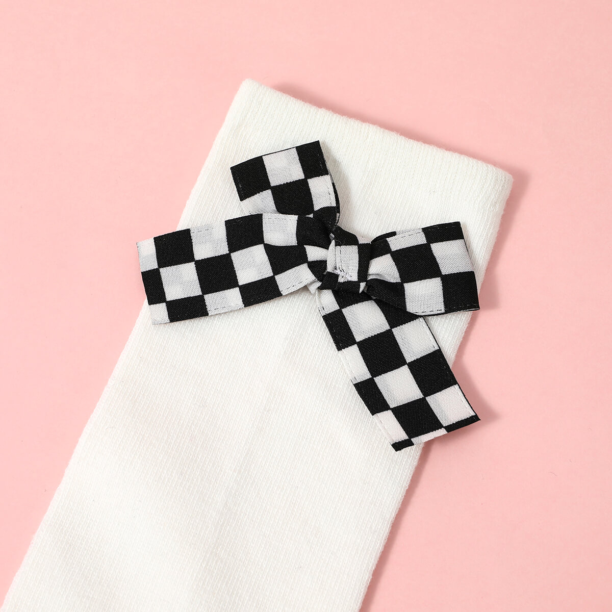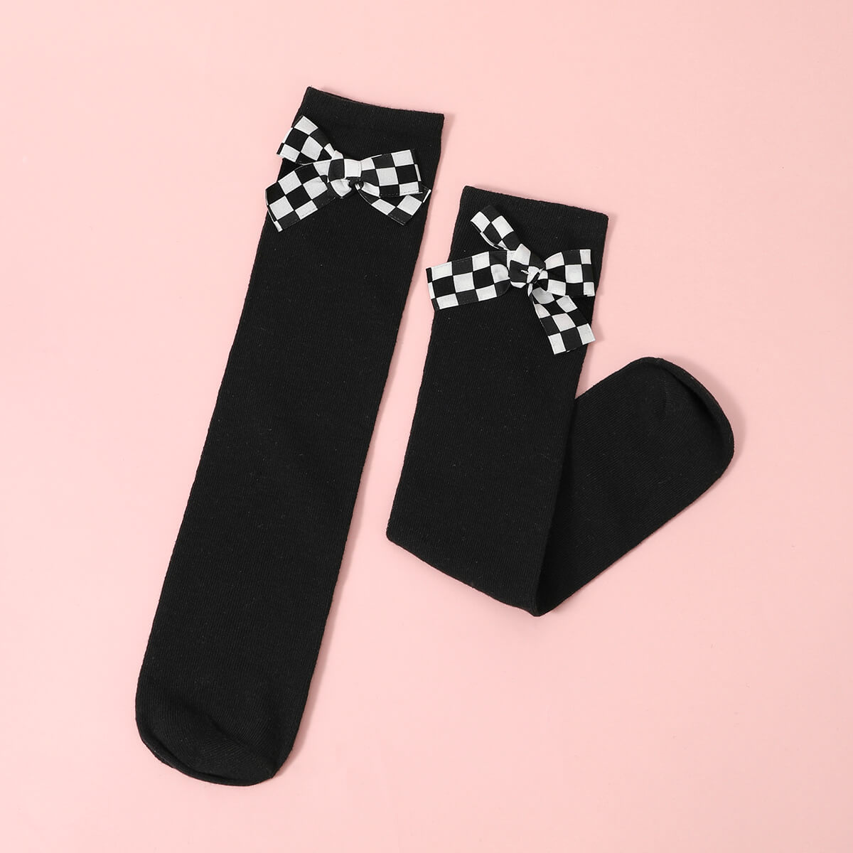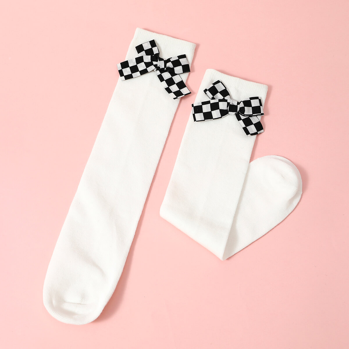 Toddler Girl Solid Color Checkerboard Bow Children Socks Wholesale