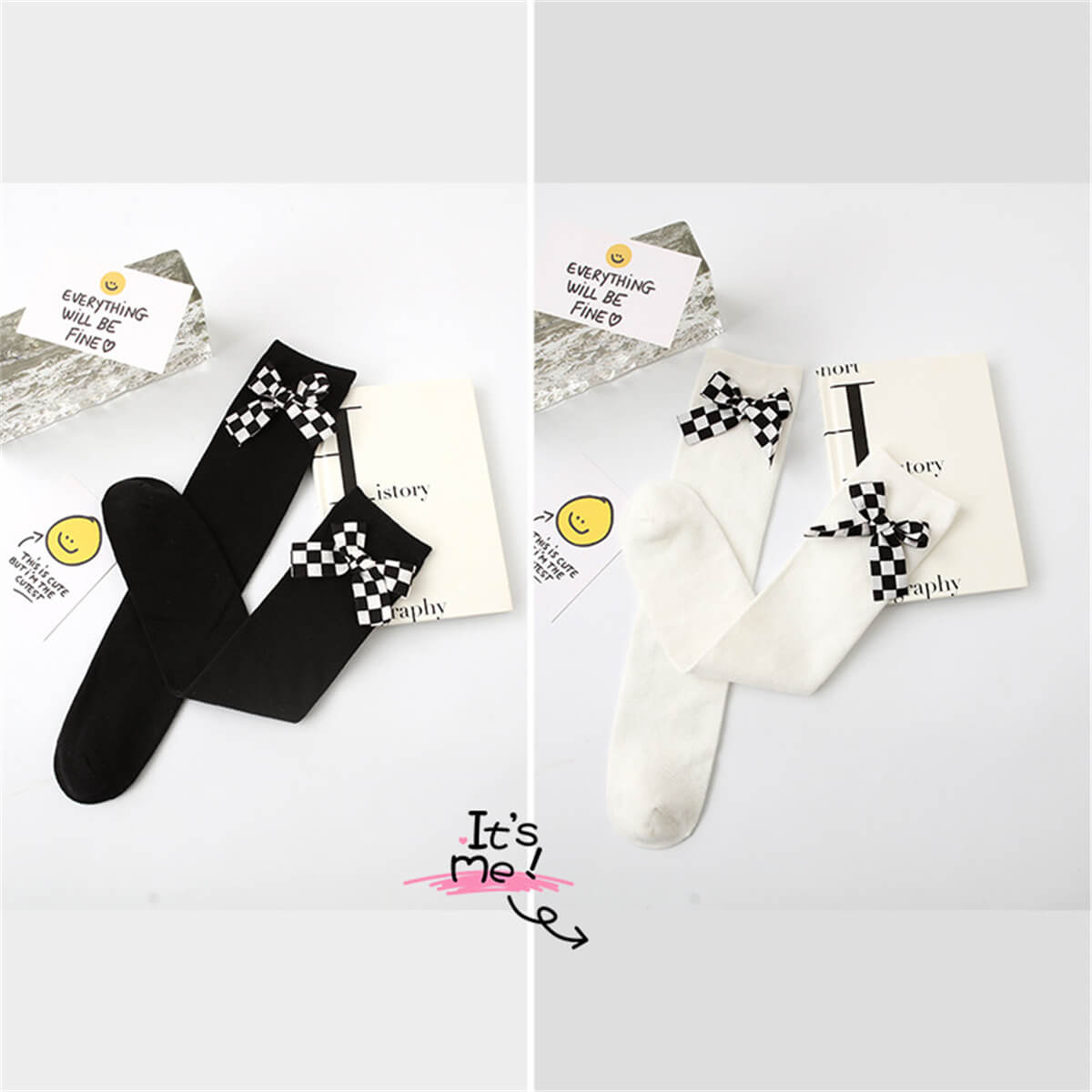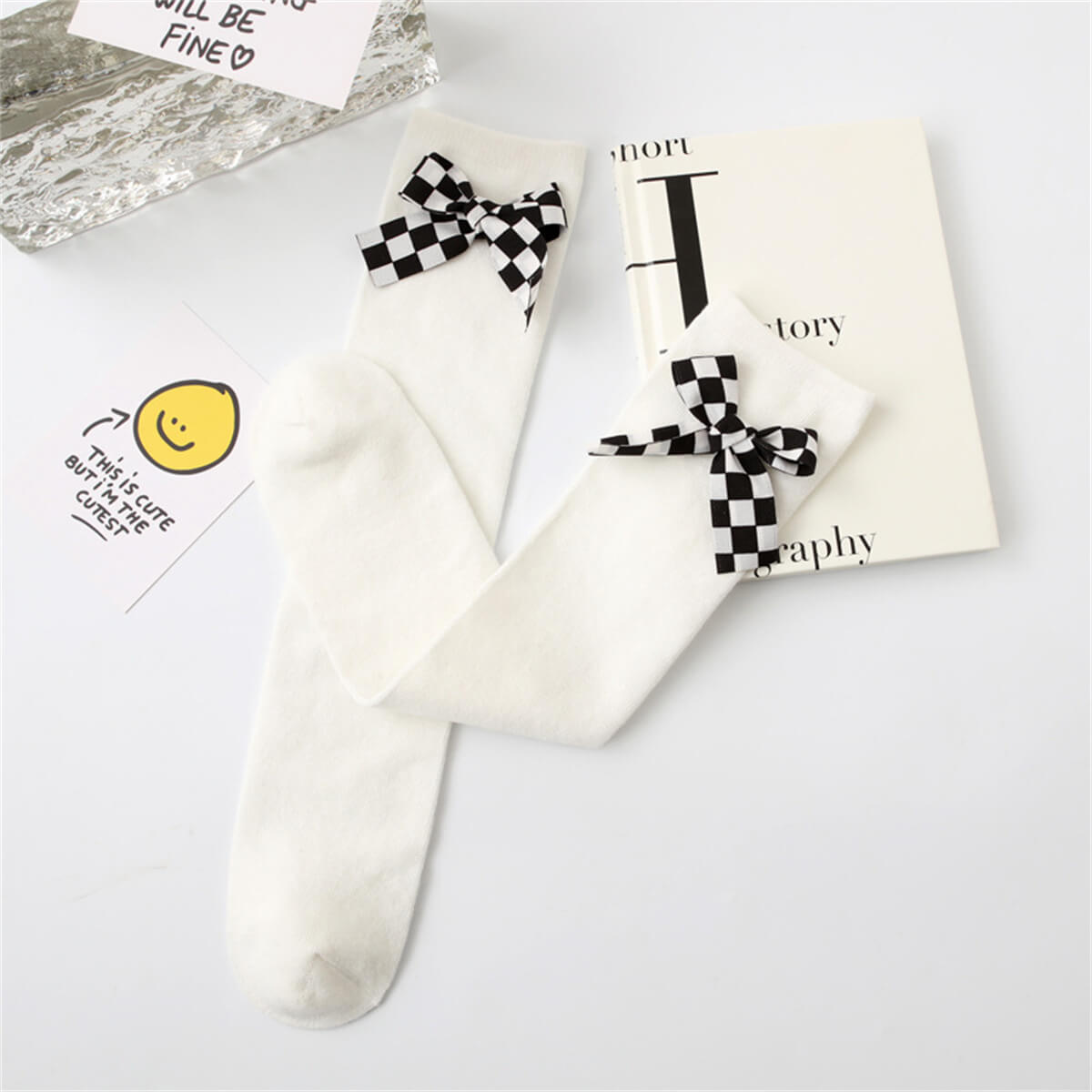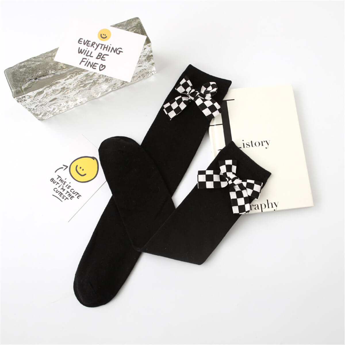 Toddler Girl Solid Color Checkerboard Bow Children Socks Wholesale
