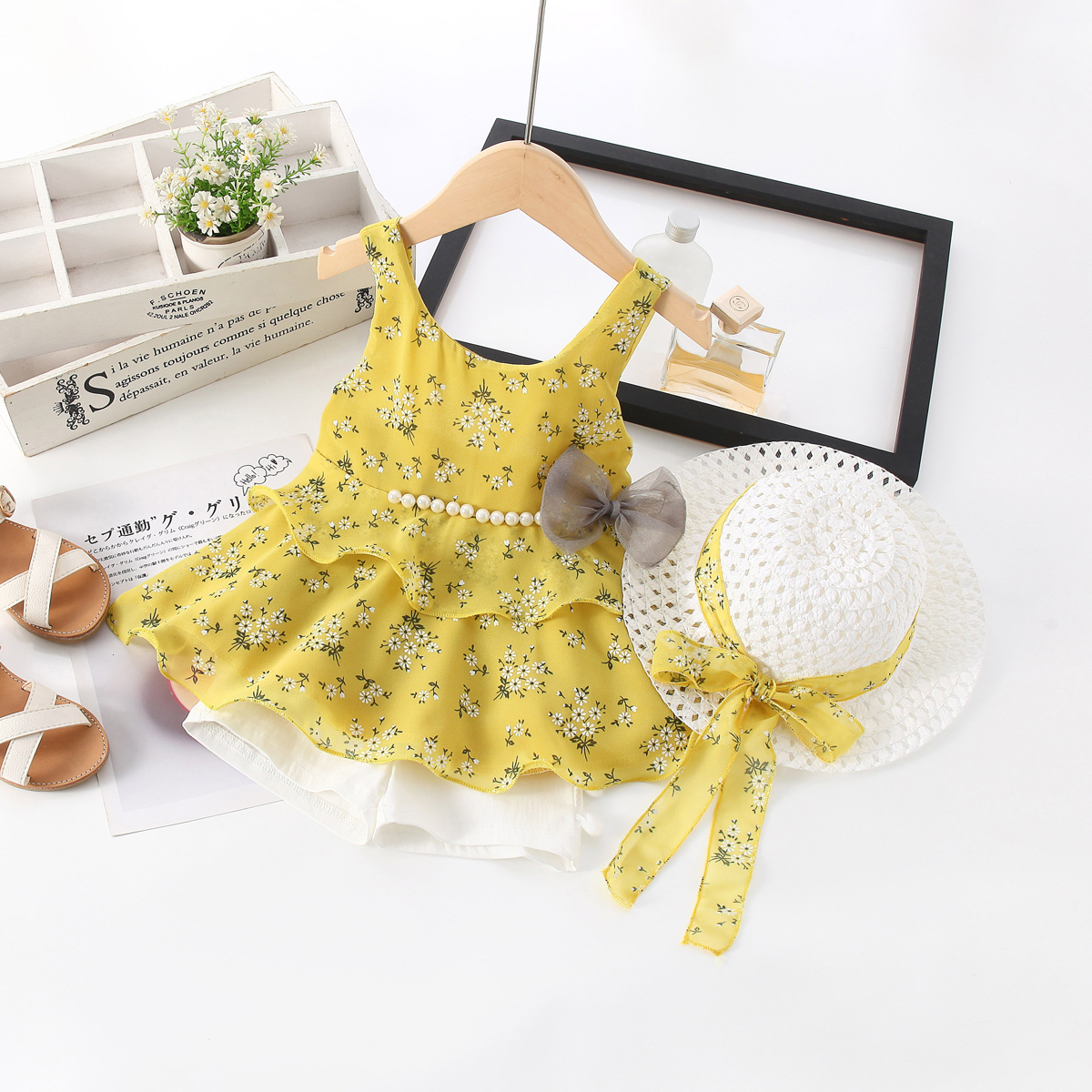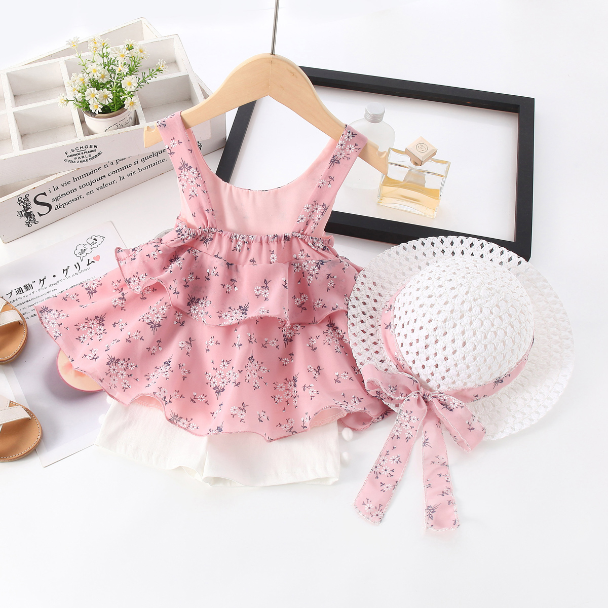 Toddler Girls Floral Ruffles Patchwork Top & Shorts Wholesale