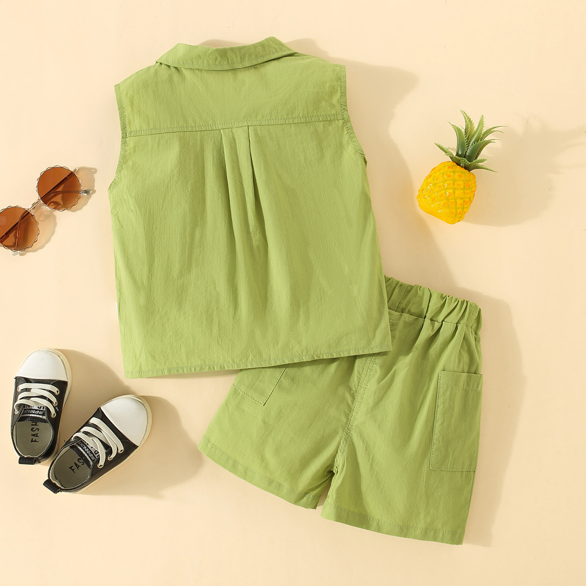 Toddler Girls Lapel Solid Single-breasted Top & Shorts Wholesale