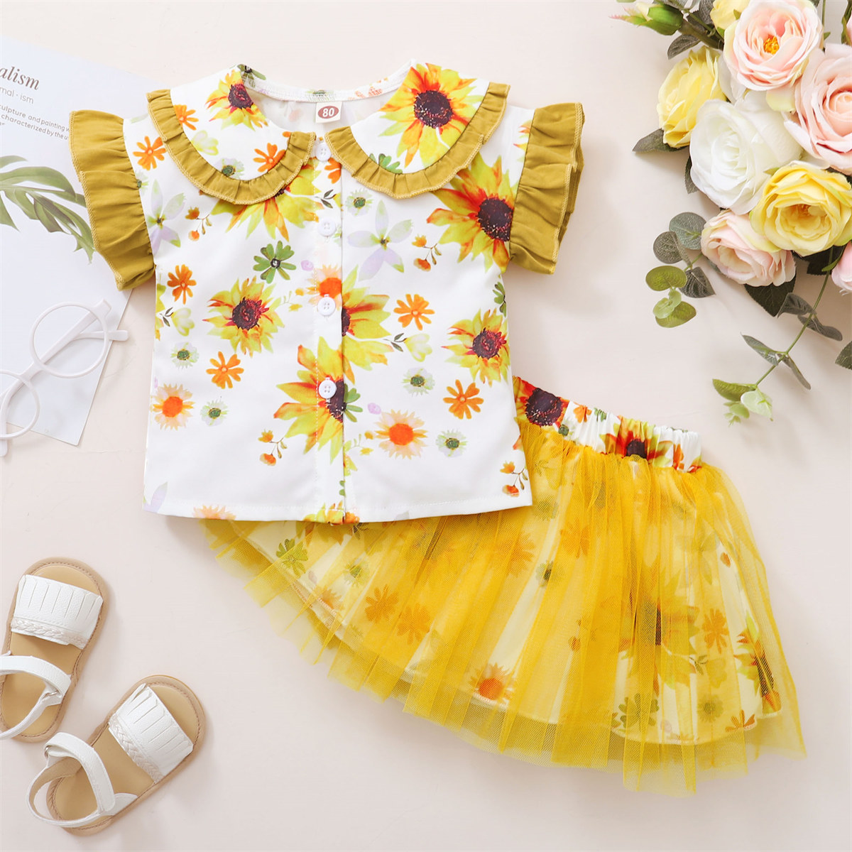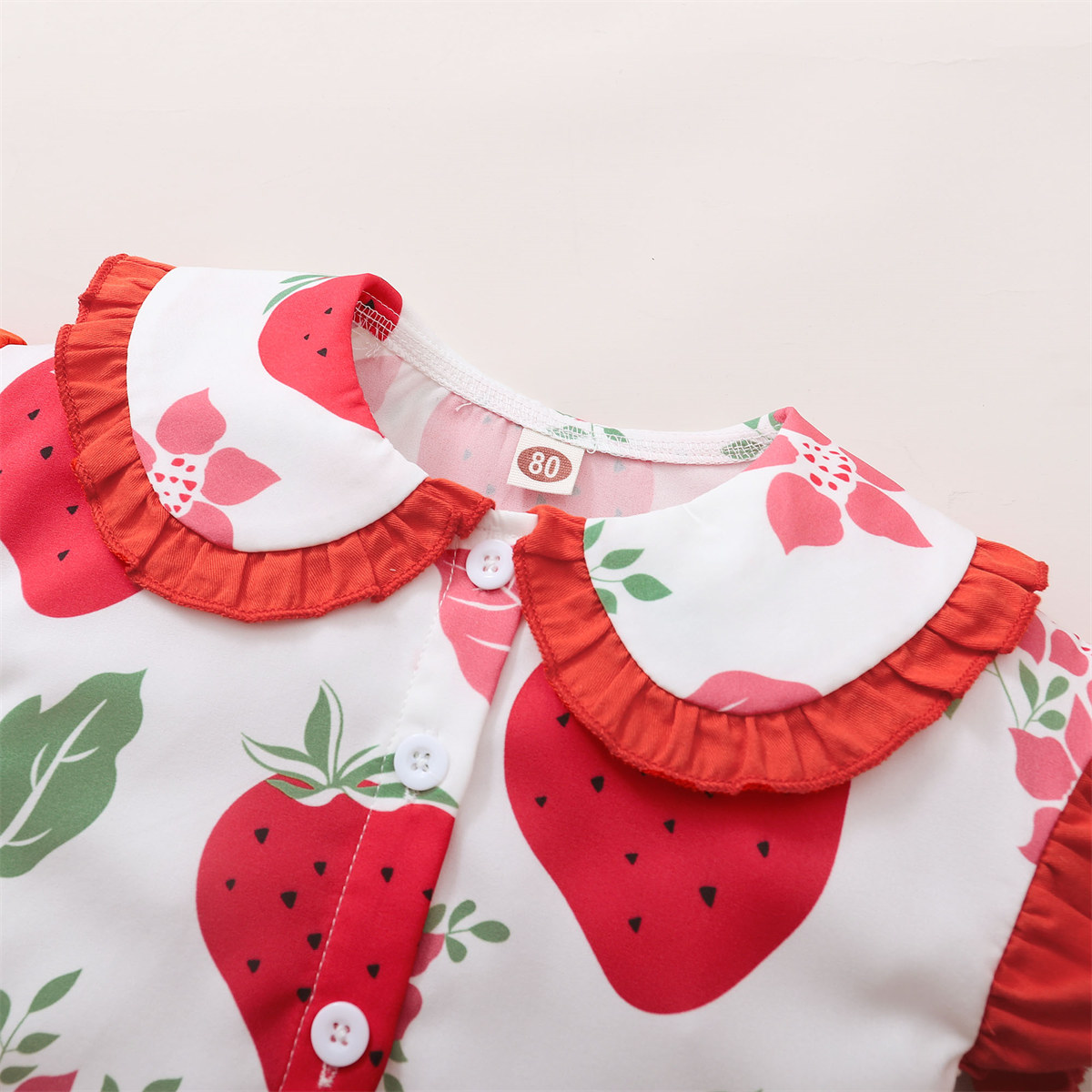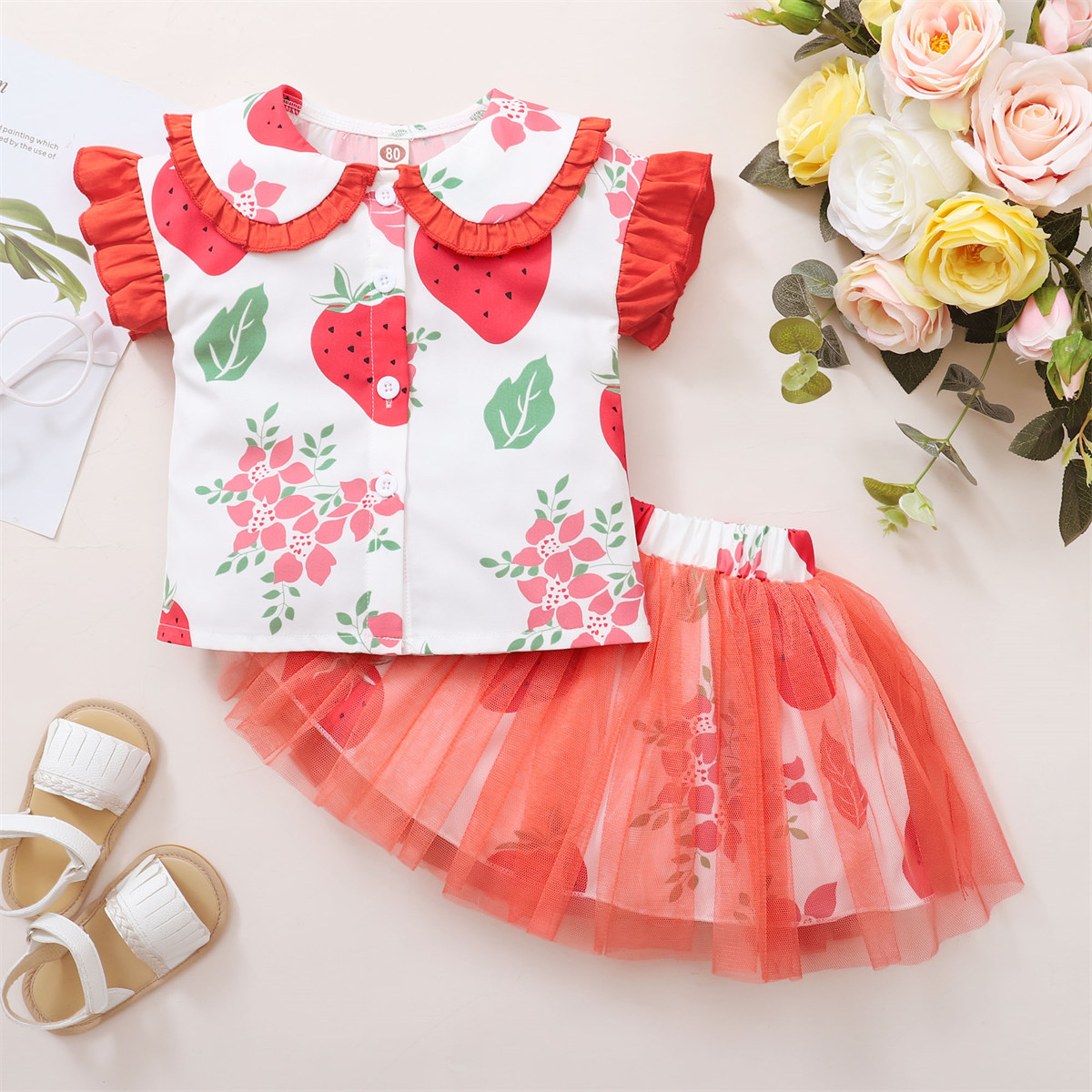 Toddler Girls Tropical Strawberry Print Ruffled Sleeve Top & Skirt Wholesale