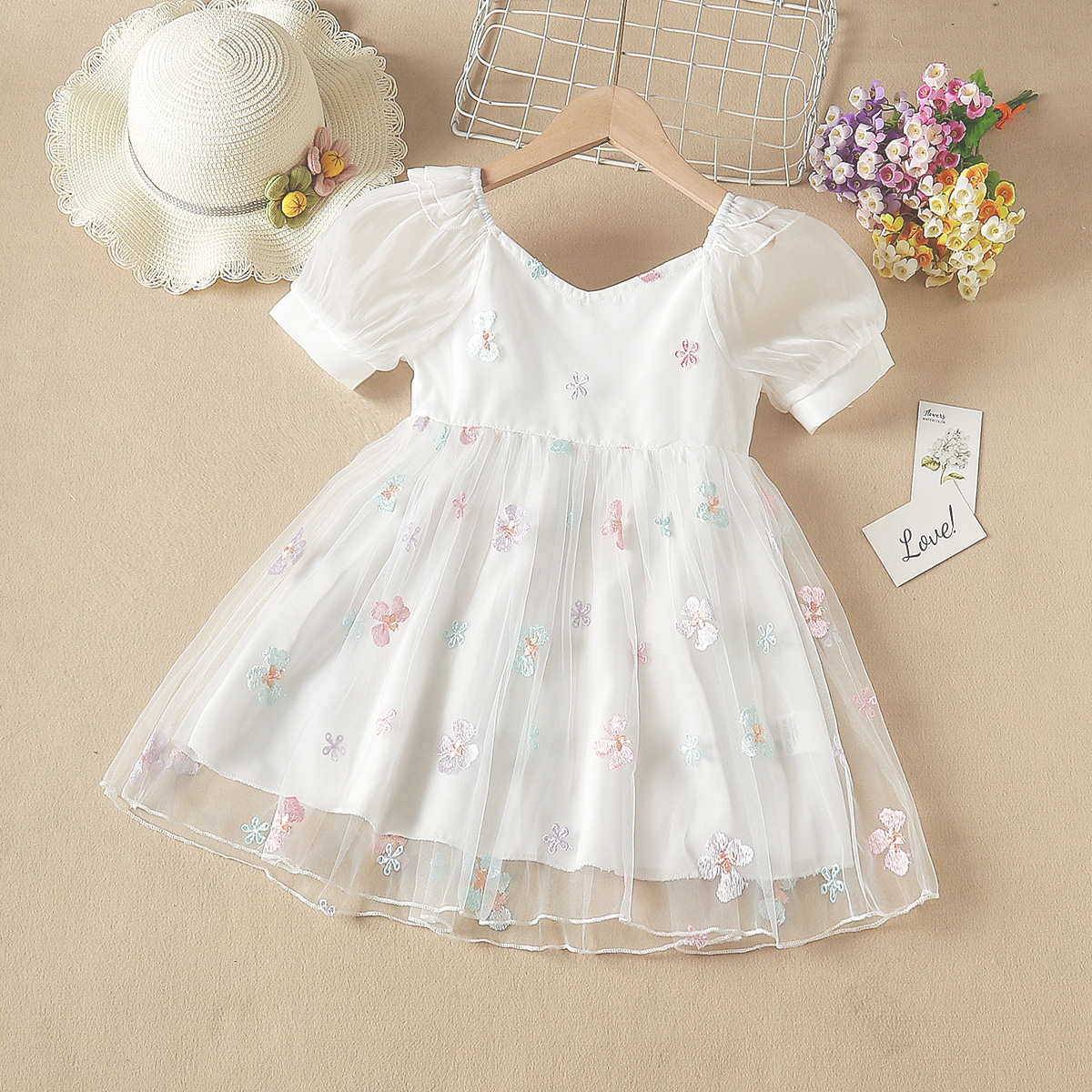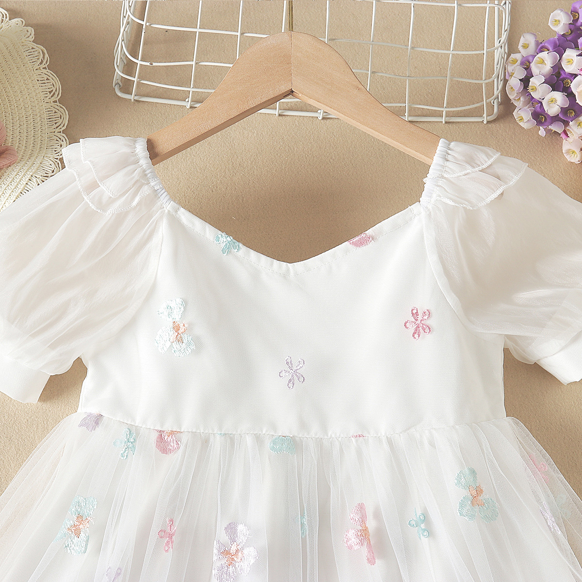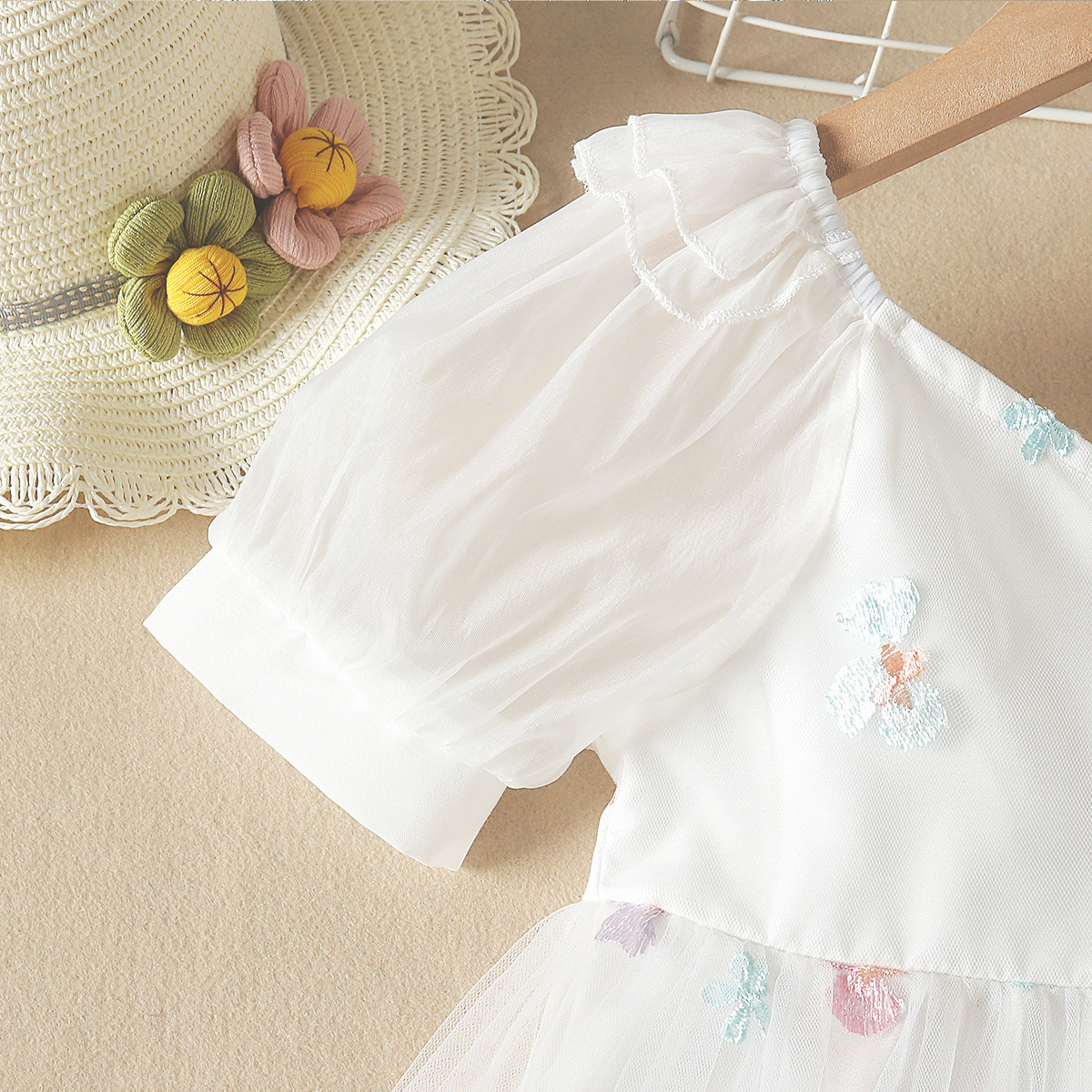 Toddler Girls V-neck Butterfly Mesh Hem Dress Wholesale